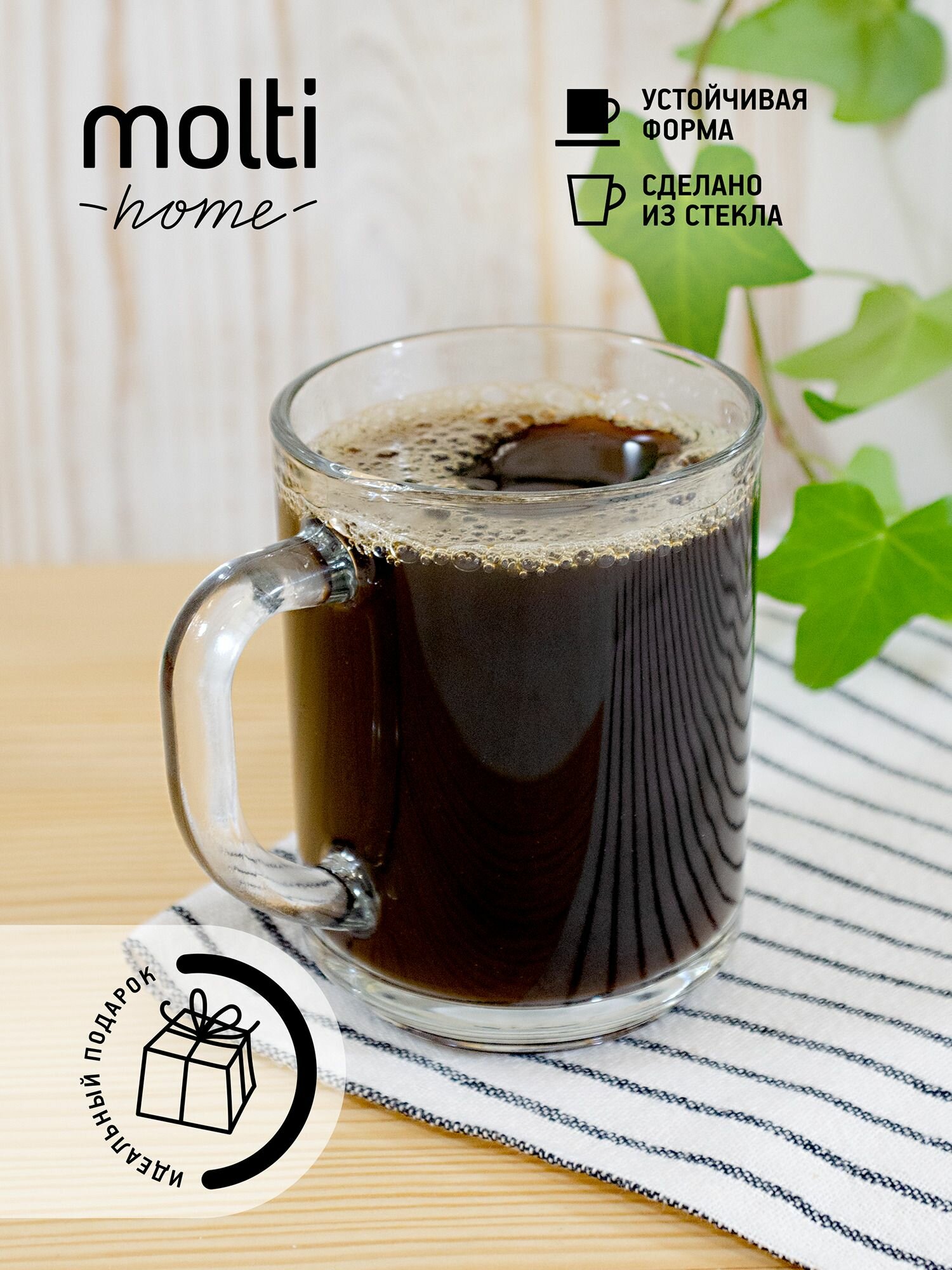 Кружка стеклянная для чая и кофе molti Enjoy чашка подарочная 250 мл, бесцветная интересное: