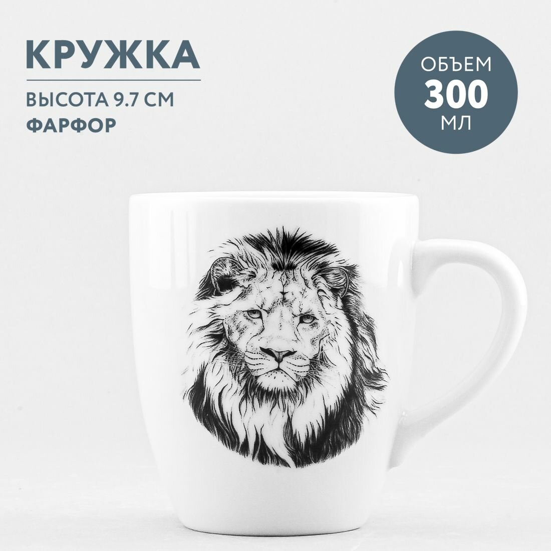 Кружка для чая и кофе фарфоровая 300 мл Добрушский фарфор Лев интересное: