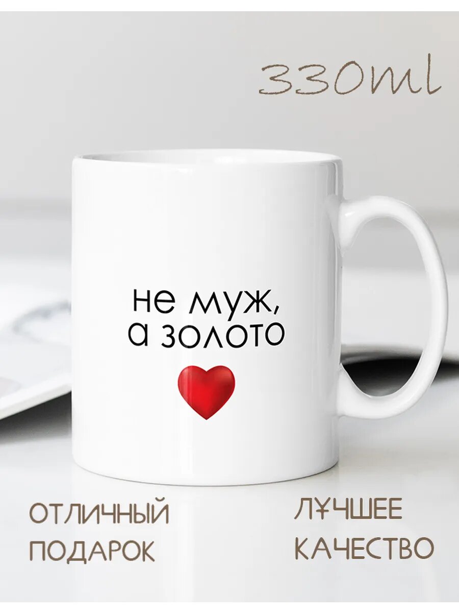 Купить Кружка CupLuv "Не муж, а золото", керамика, 330 мл, алая, с принтом, подарочная