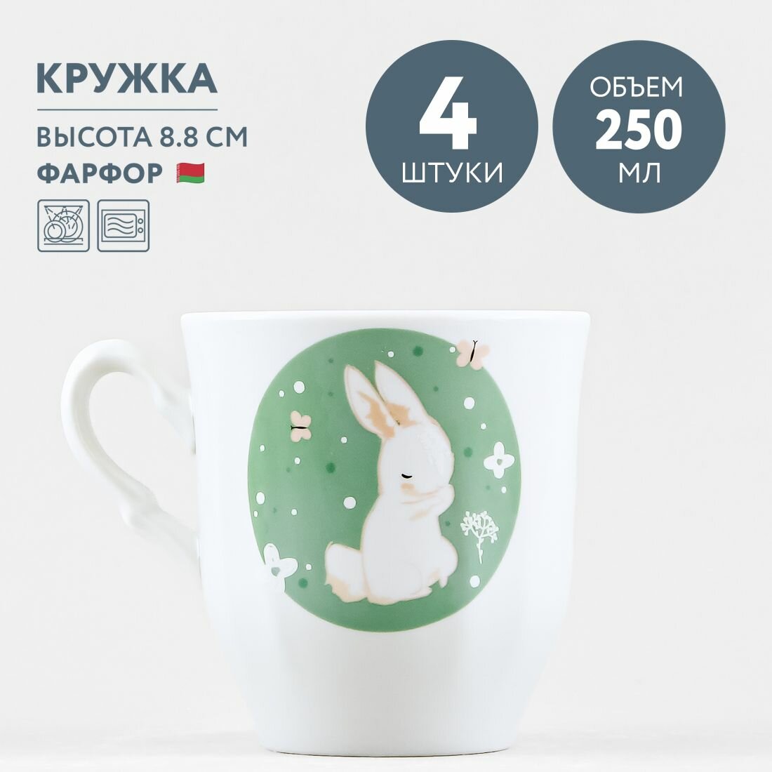 Набор из 4 кружек детских 250 мл Добрушский фарфор Bunny интересное: