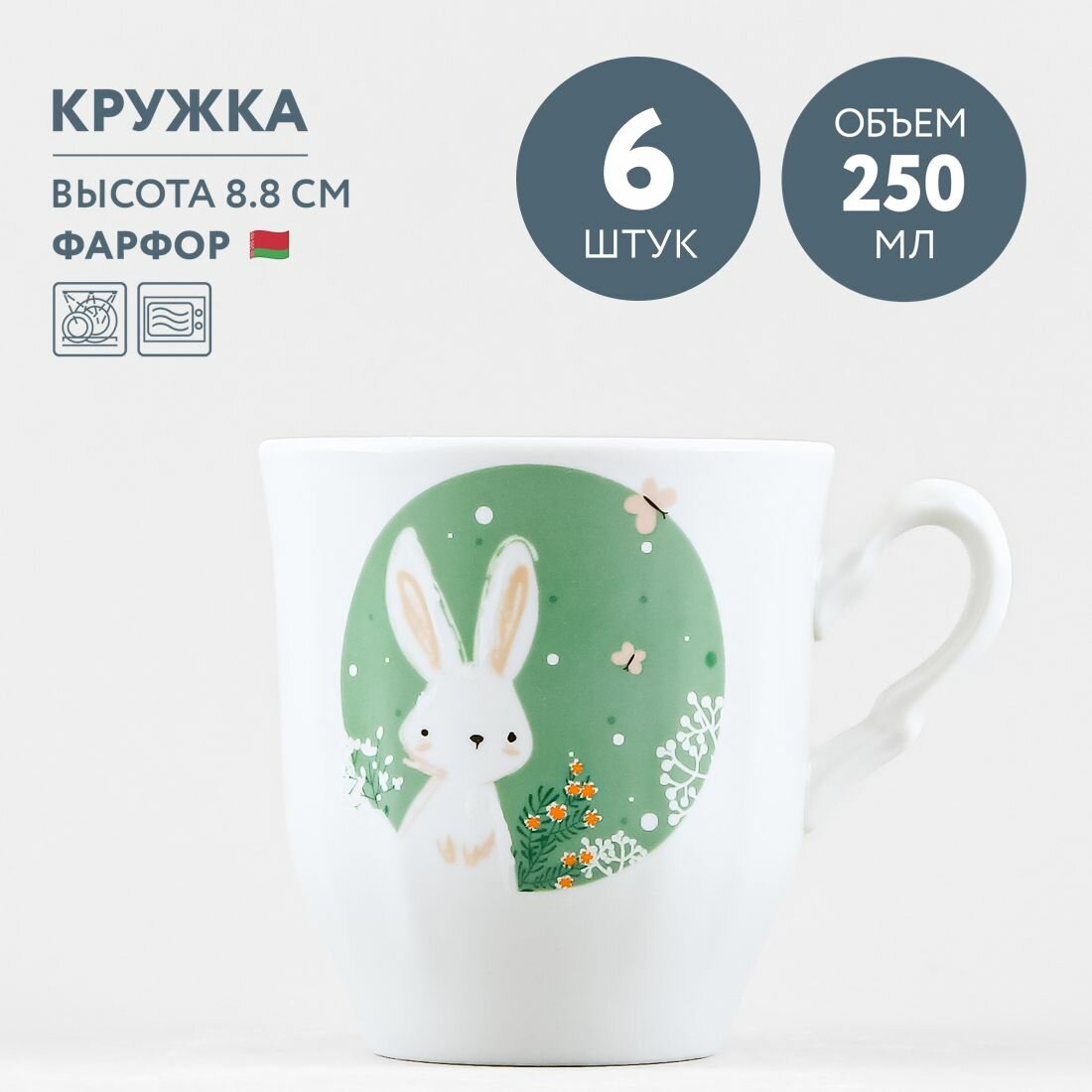 Набор из 6 кружек детских 250 мл Добрушский фарфор Bunny интересное: