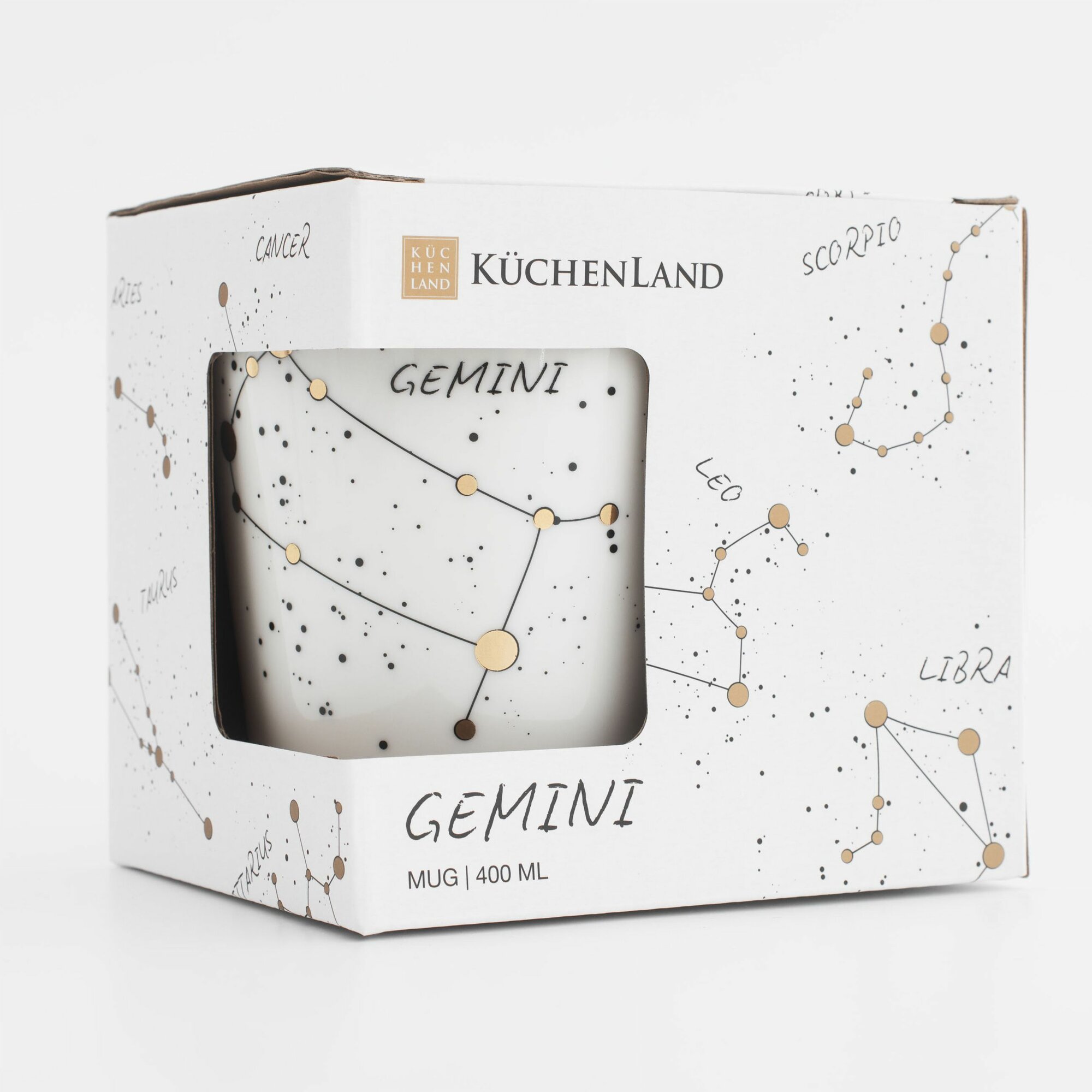 Купить Кружка, 400 мл, фарфор N, молочно-золотистая, Близнецы, Zodiac