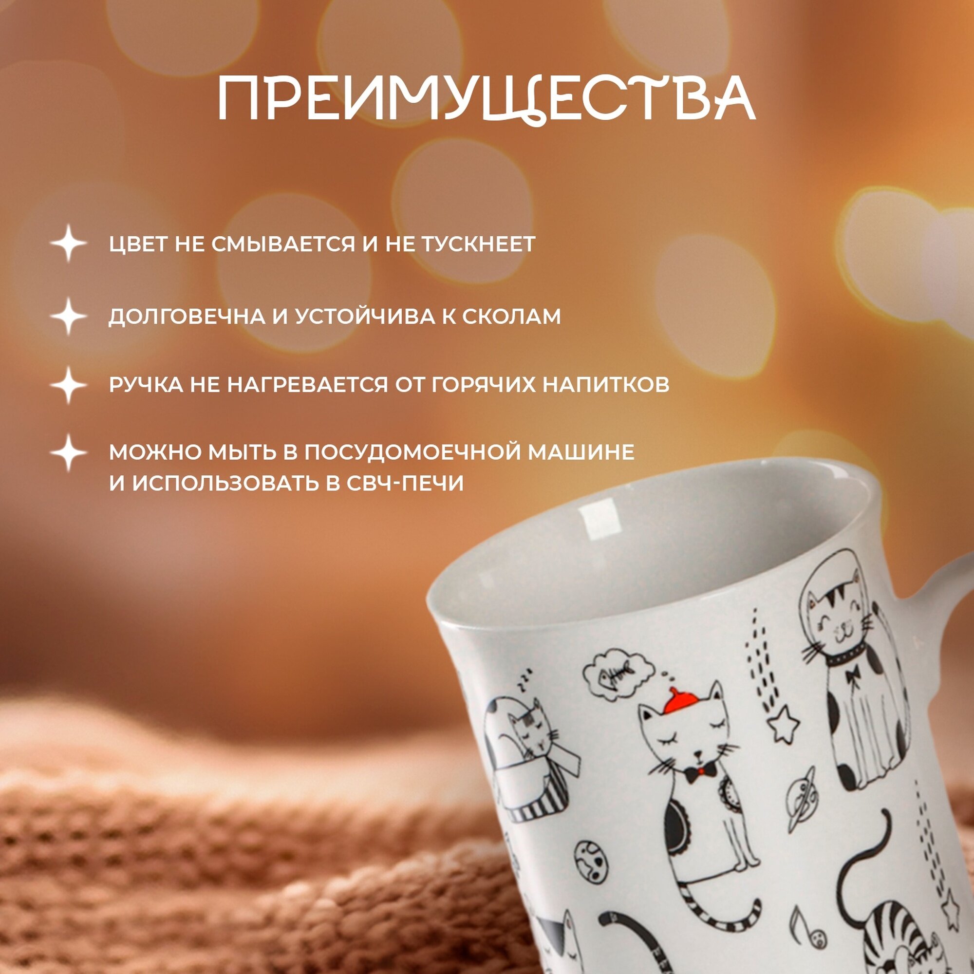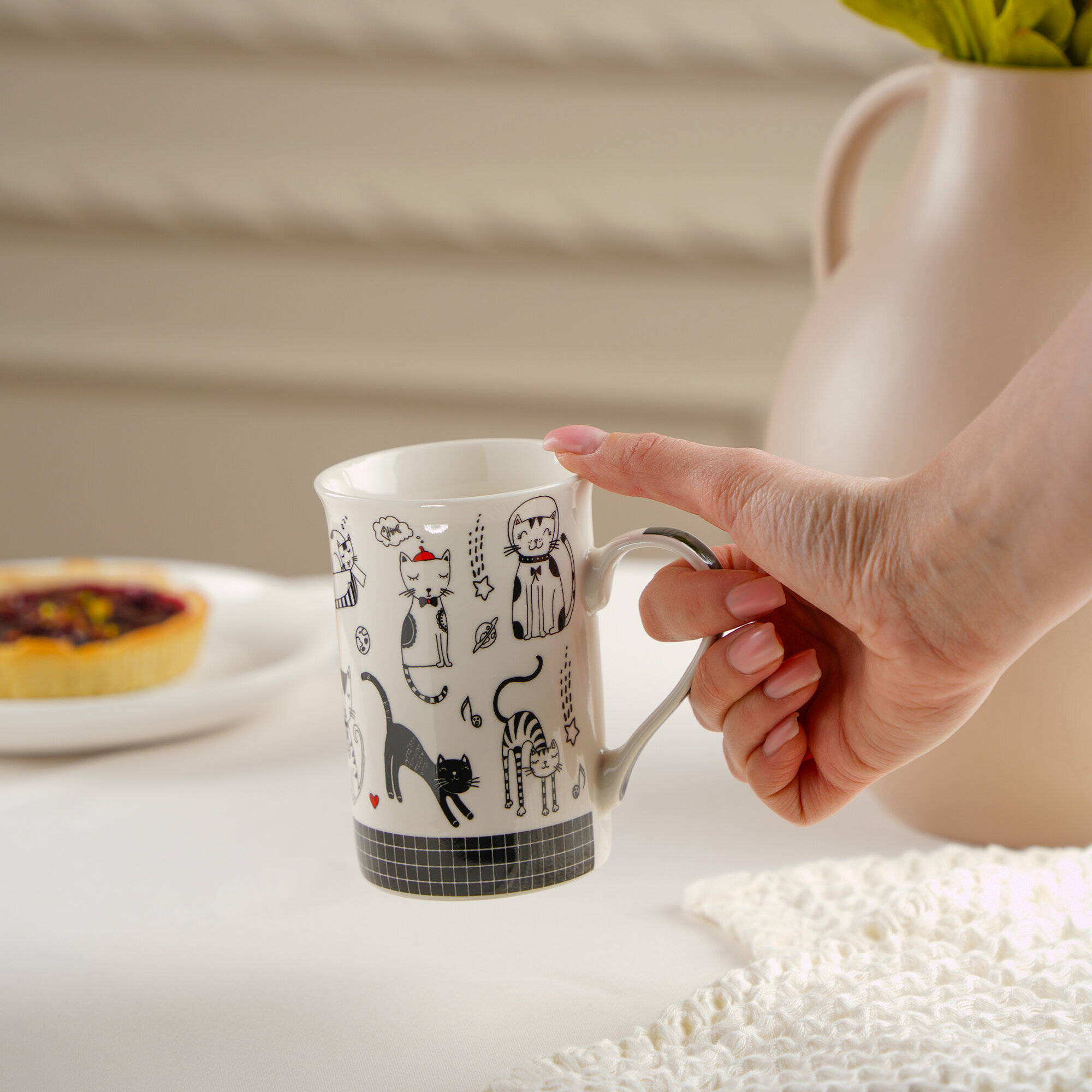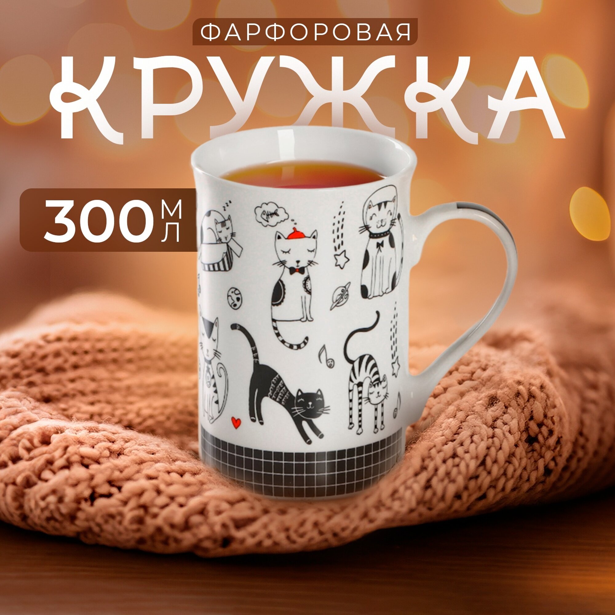 Купить Кружка для чая и кофе Доляна "Кошачьи будни", 300 мл, фарфор, белая