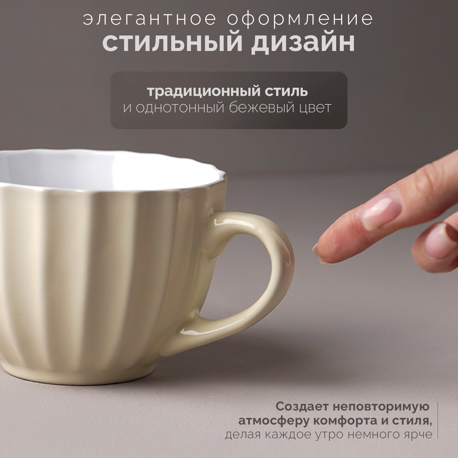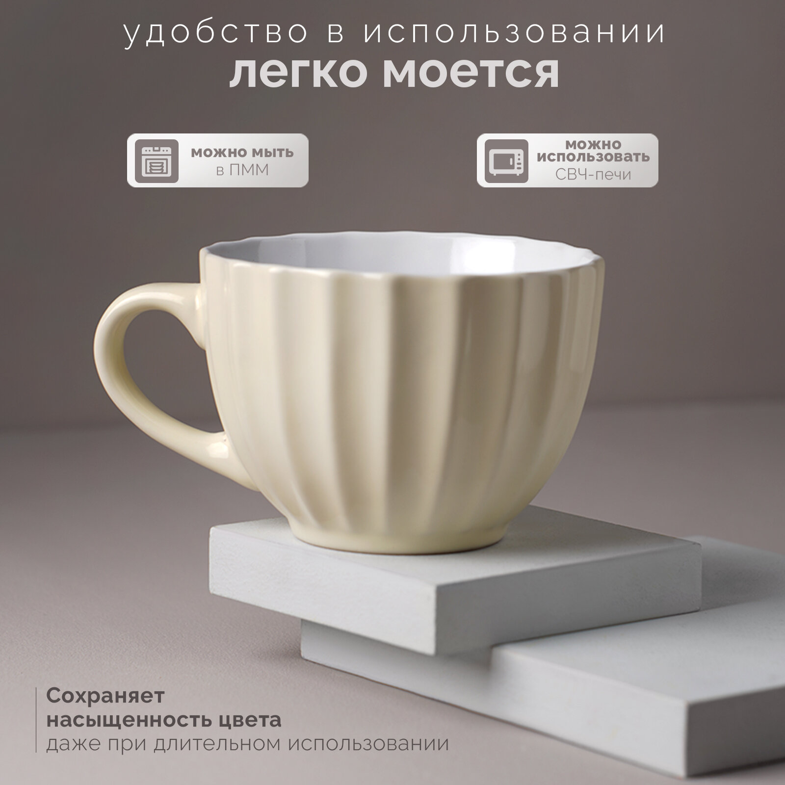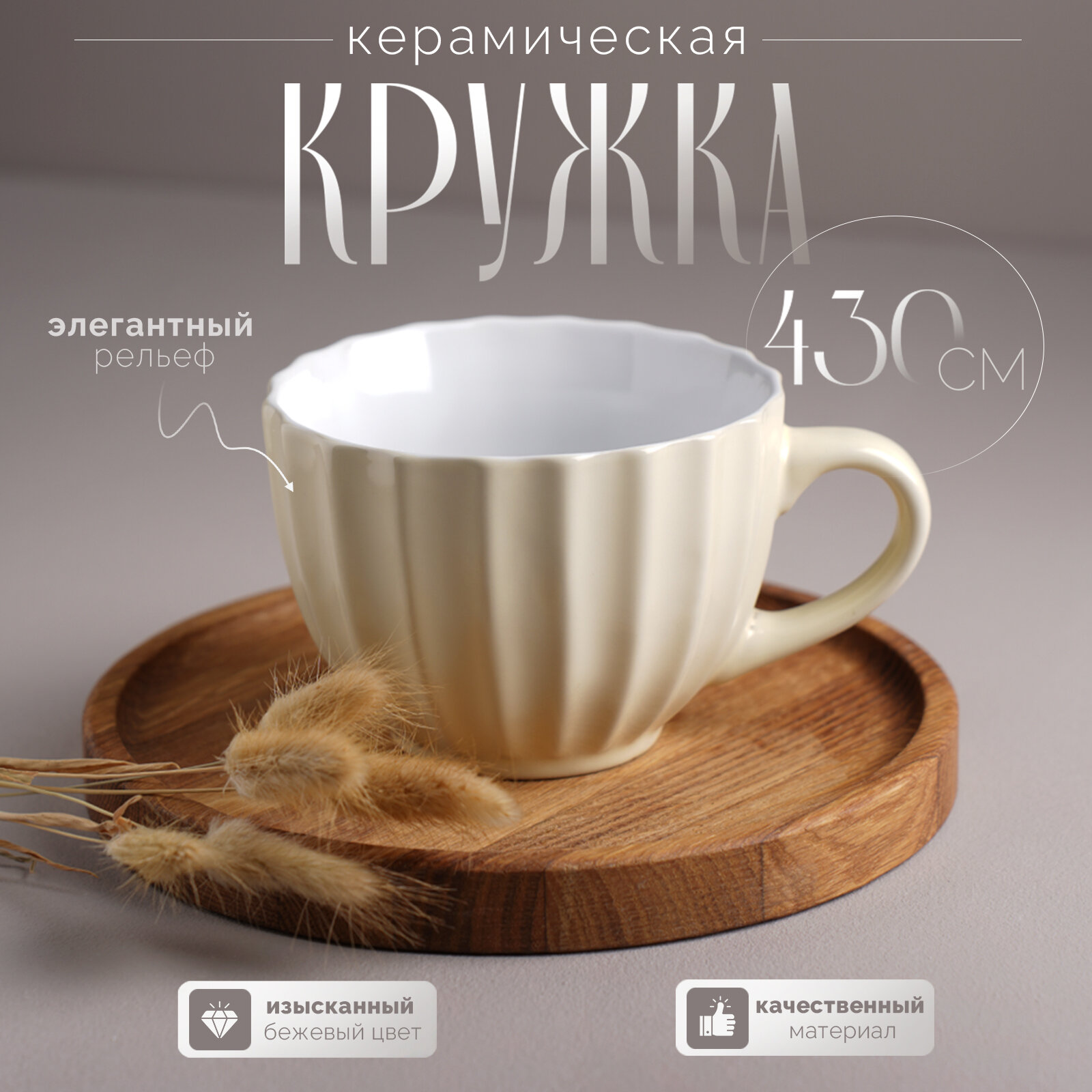Купить Кружка керамическая Доляна «Ноэми», 430 мл, цвет бежевый