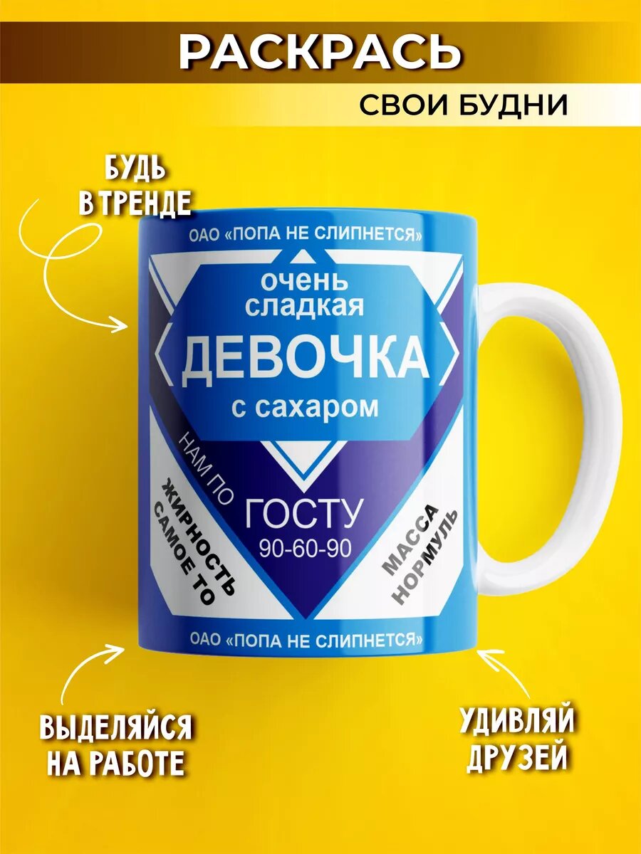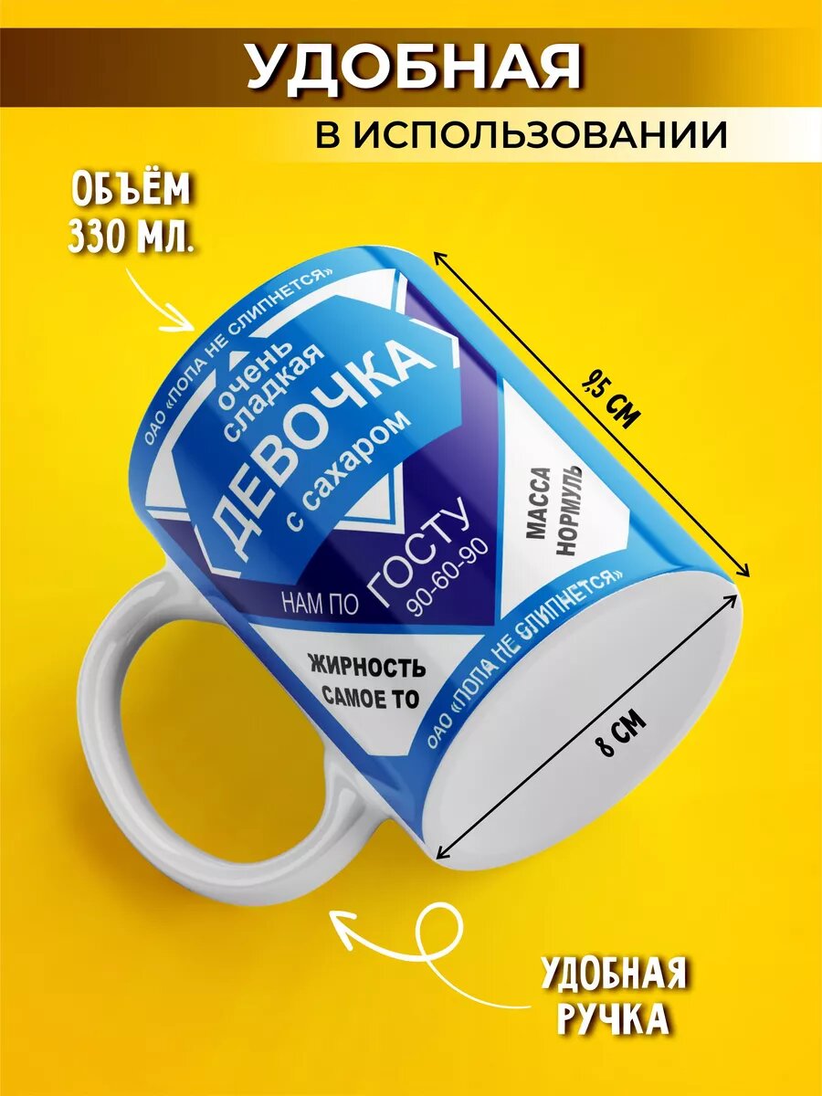Кружка Сгущенка Очень сладкая девочка с сахаром, керамическая, 330 мл интересное: