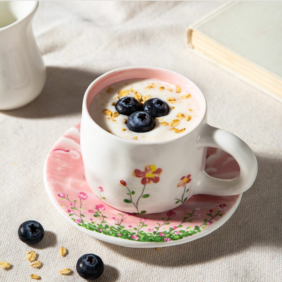 Набор DB HOMME, кружка и блюдце, керамика, 3D-принт, желтый, розовый, зелёный