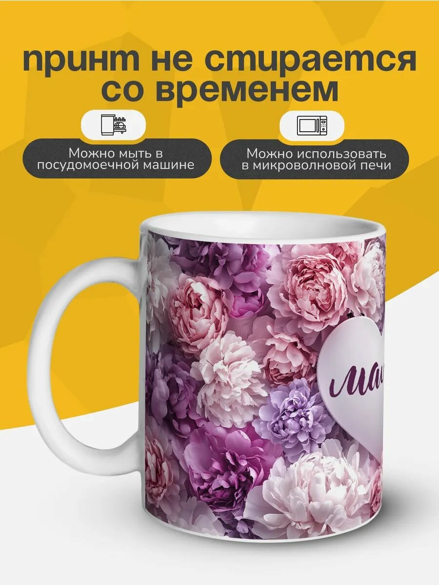 Купить Кружка керамическая для чая и кофе с принтом и надписью подарок для мамы "Пионы - мама"