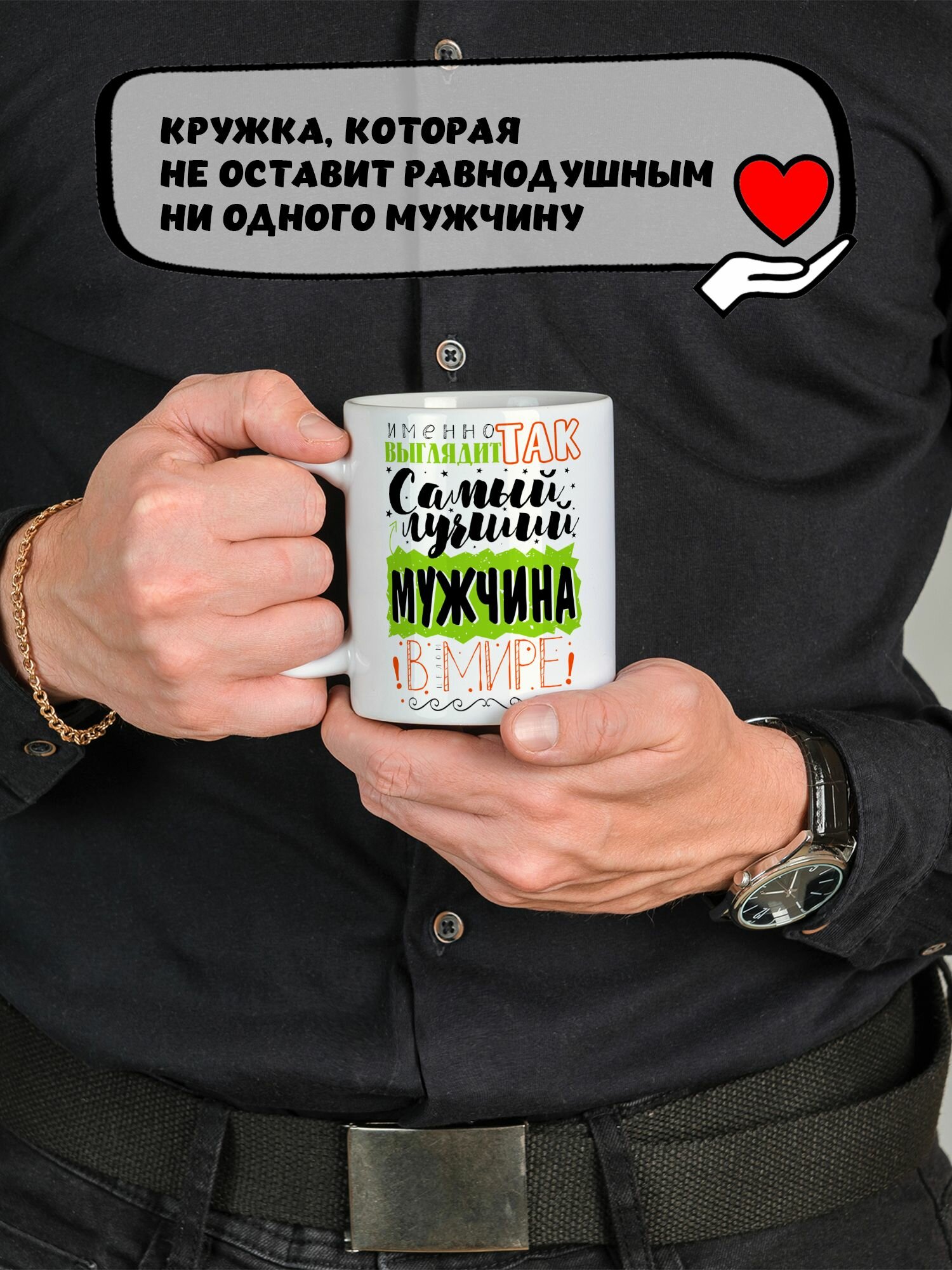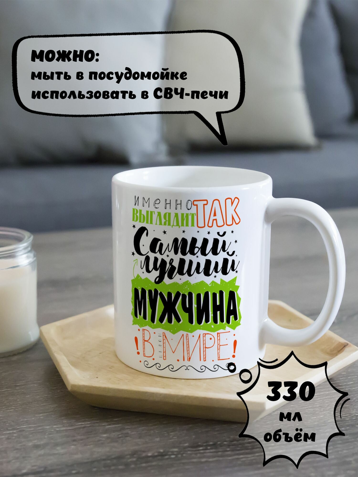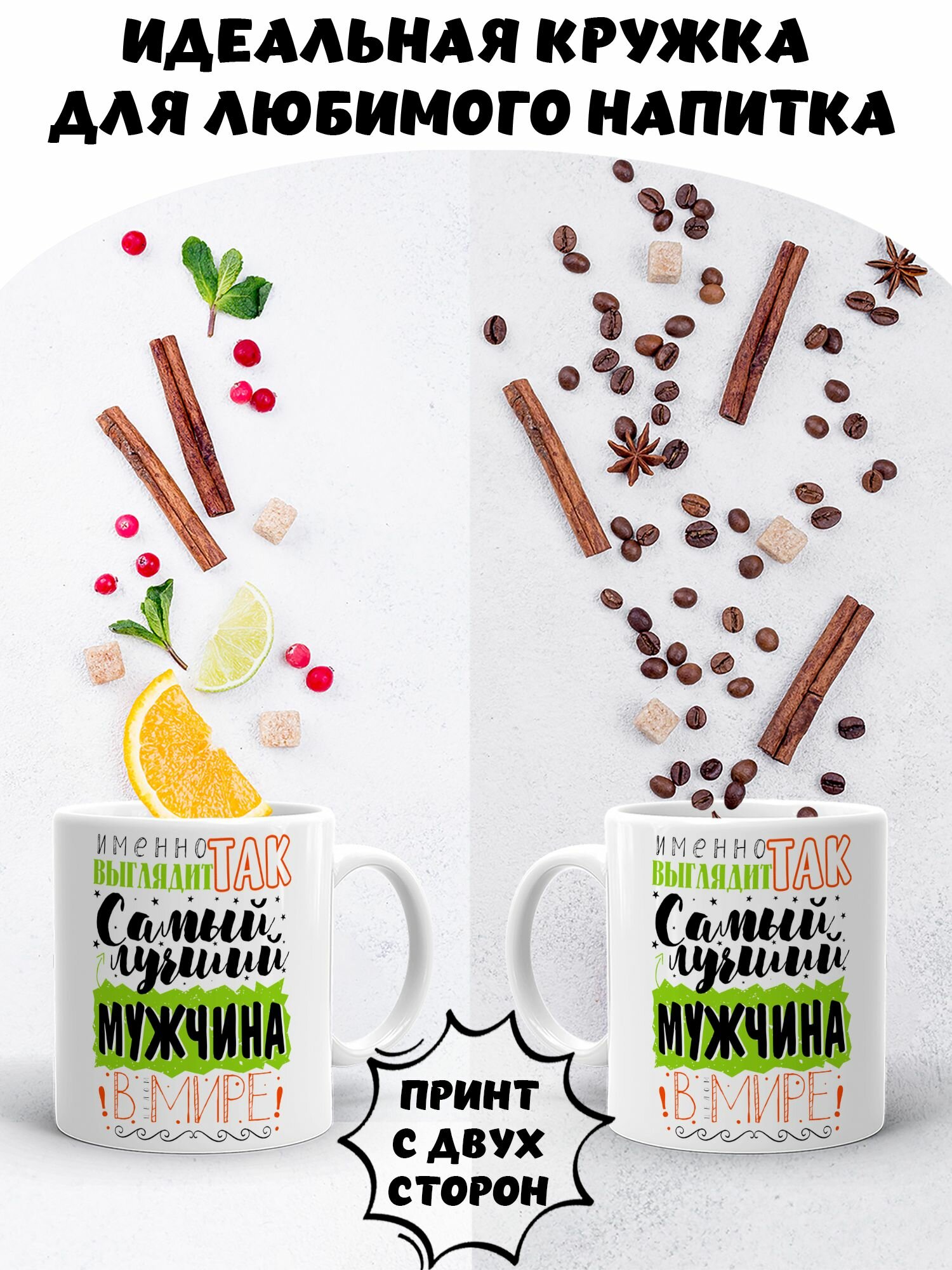 Купить Кружка керамическая для чая и кофе подарок с принтом и надписью "Именно так выглядит самый лучший мужчина в Мире"