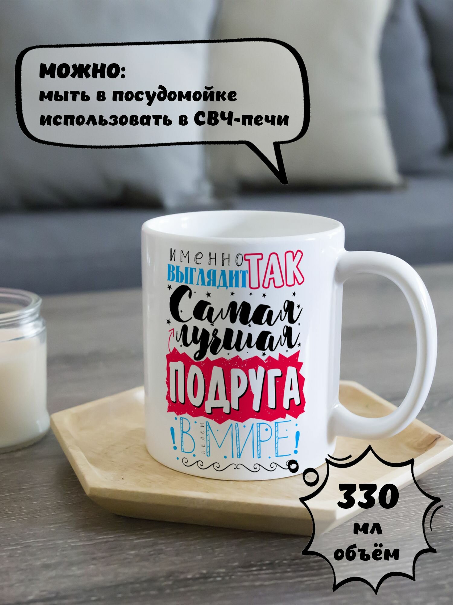 Купить Кружка керамическая для чая и кофе подарок с принтом и надписью "Именно так выглядит самая лучшая подруга в Мире"