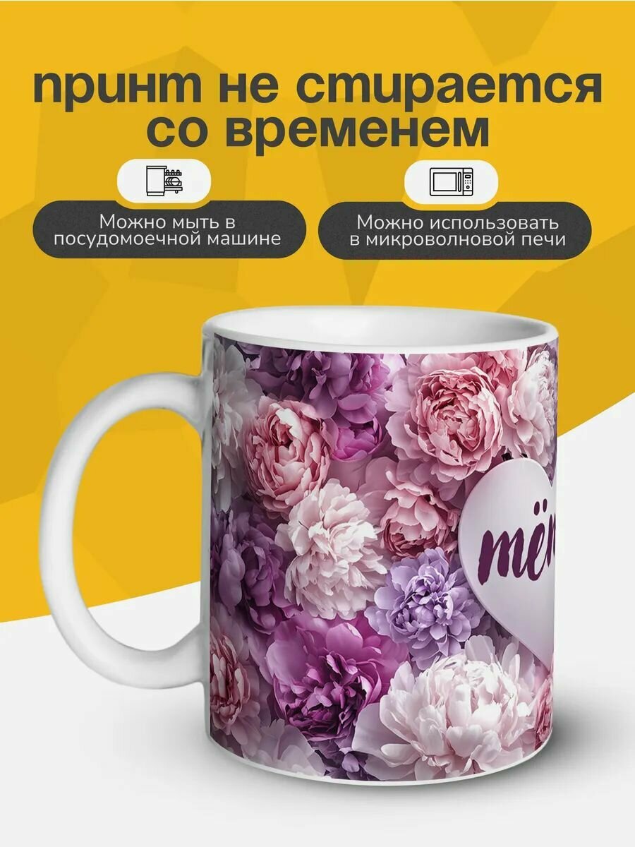 Кружка керамическая для чая и кофе с принтом и надписью подарок для мамы "Пионы - мама"