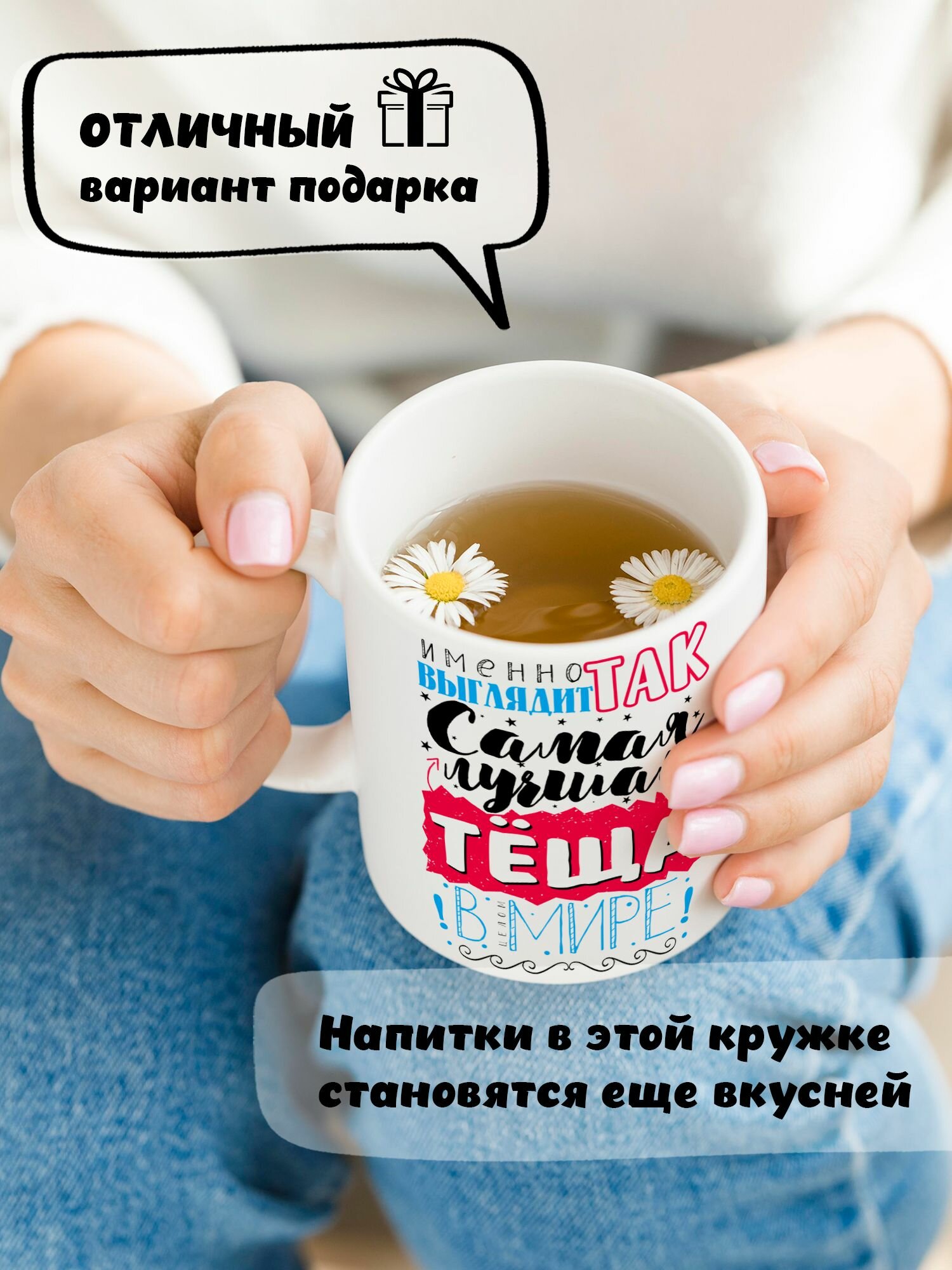 Купить Кружка керамическая для чая и кофе подарок с принтом и надписью "Именно так выглядит самая лучшая теща в Мире"