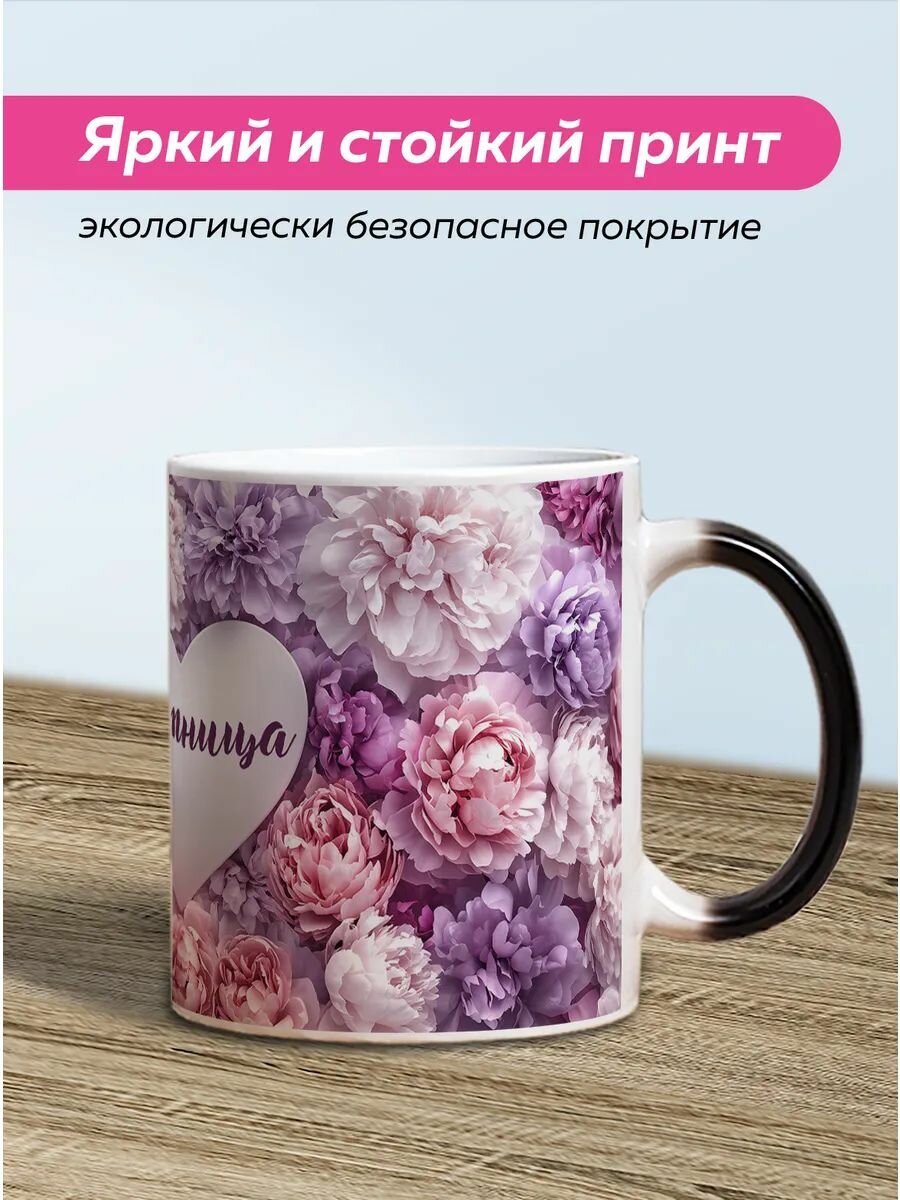 Купить Кружка хамелеон для чая и кофе с приколом подарок для крестницы "Пионы - крестница"