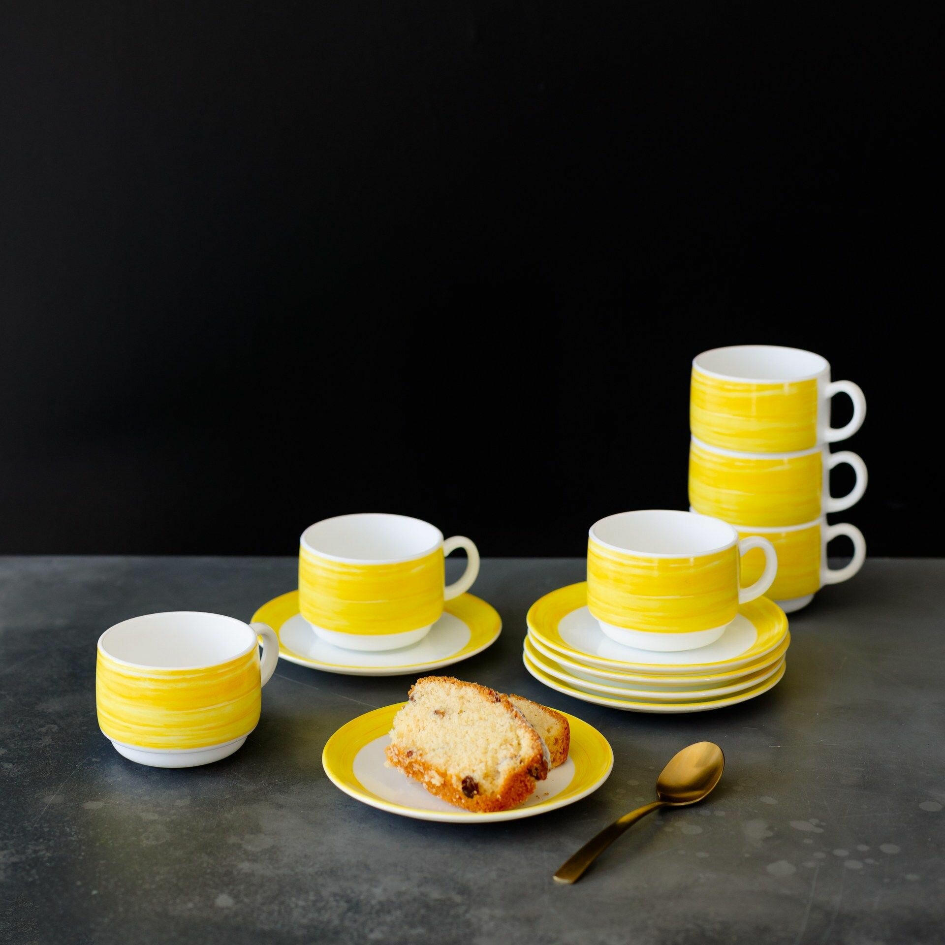 Купить Набор чашек чайных 190 мл. диаметр 7,6 см. высота 5,7 см, 6 шт, стеклокерамика, желтый, Arcoroc Brush
