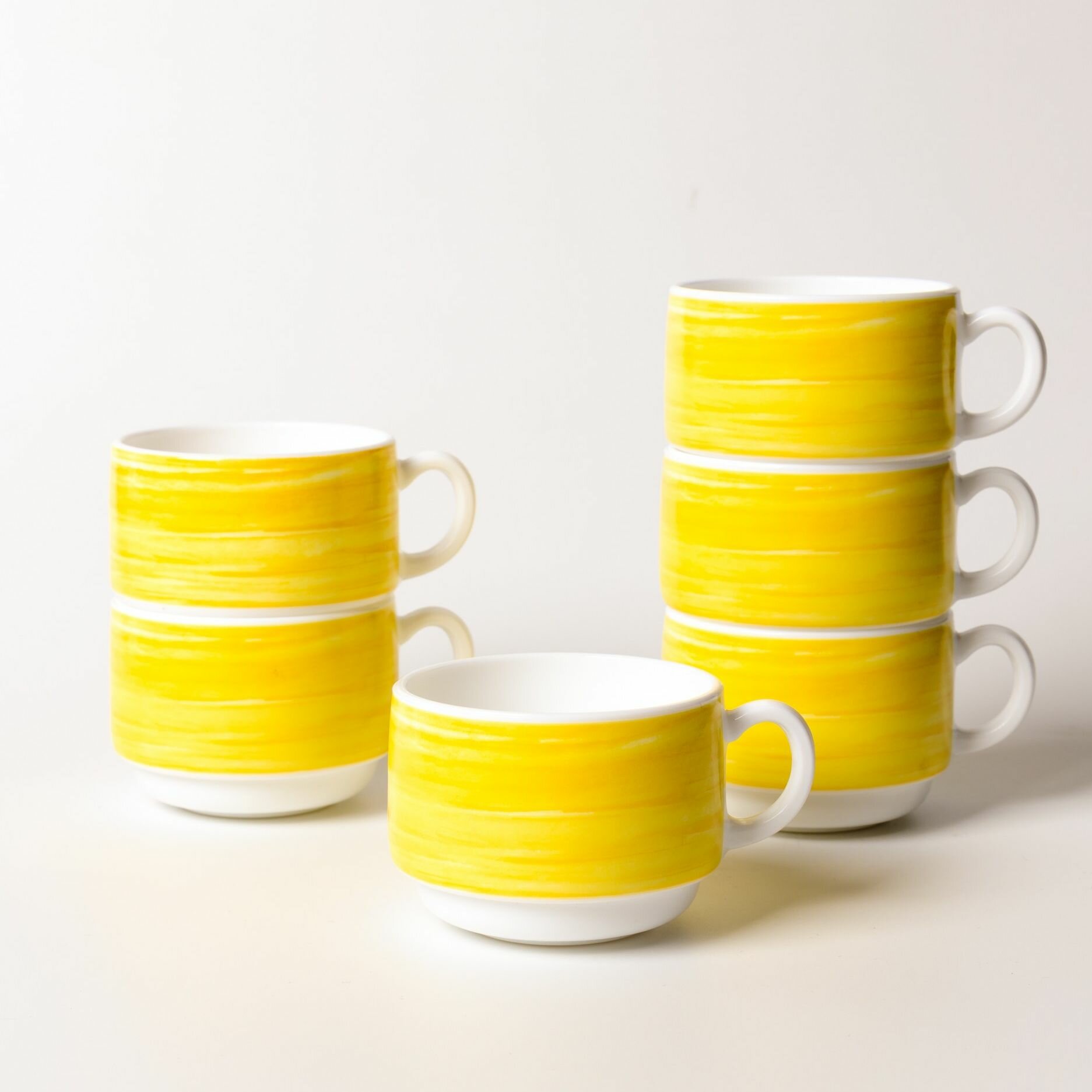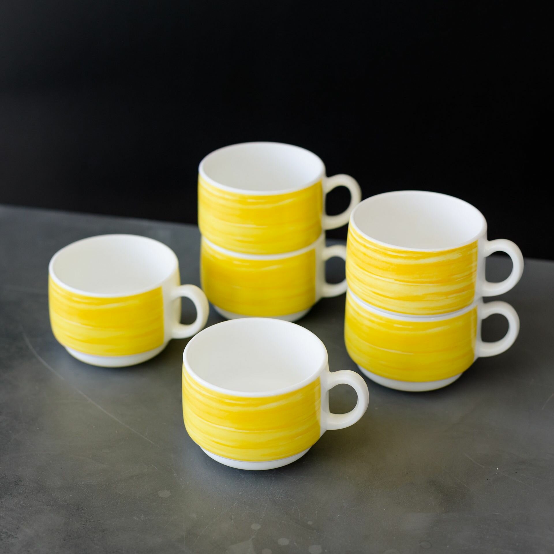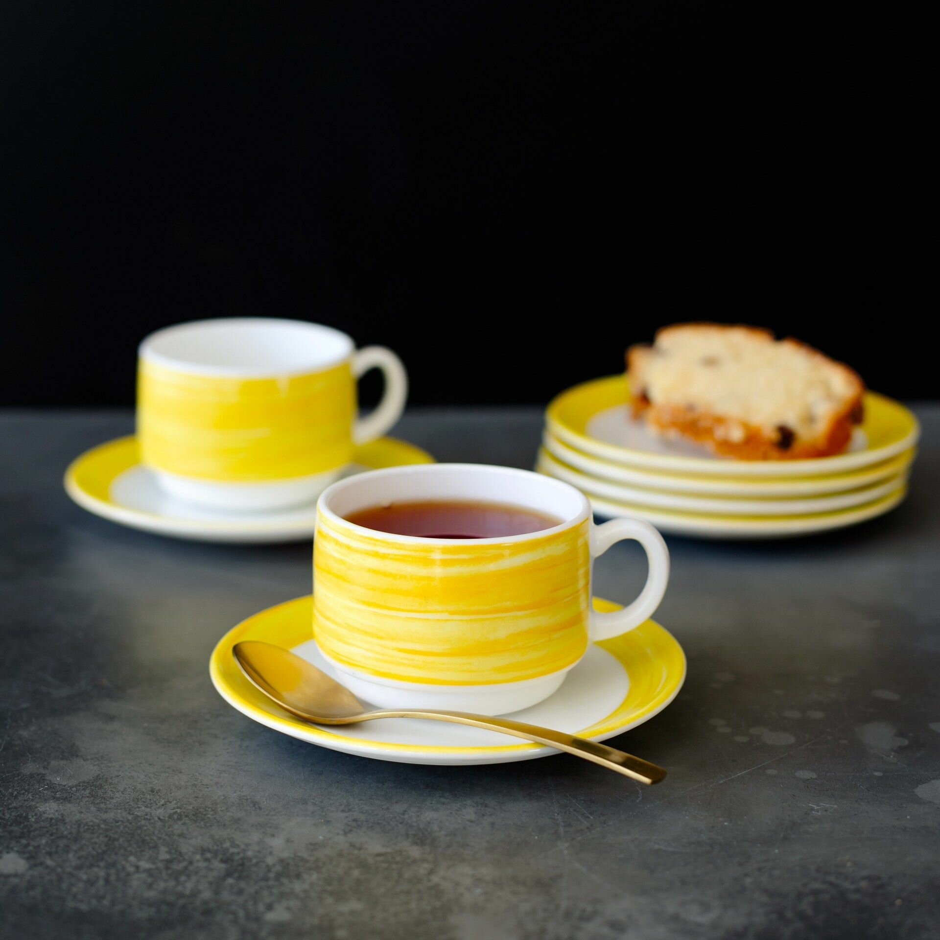 Набор кружек для чая 6 шт 250 мл, диаметр 7 см, высота 8,8 см, желтый, Arcoroc Brush