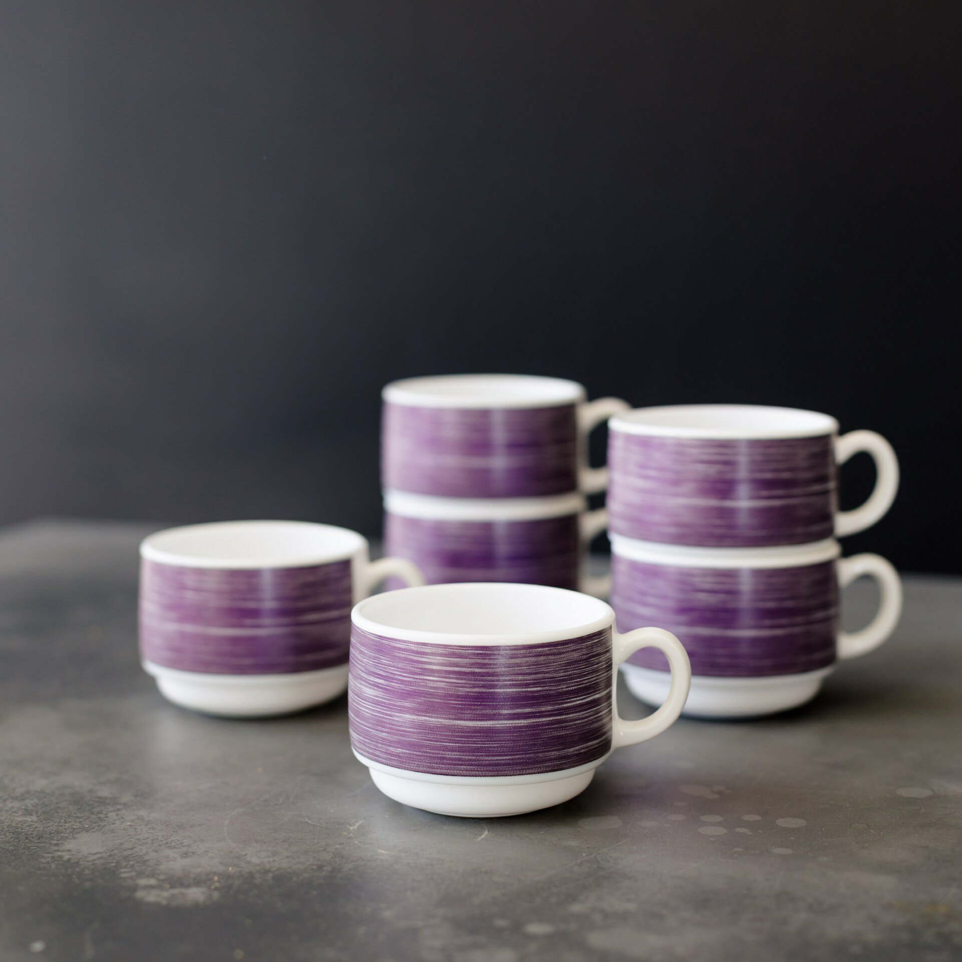 Купить Набор чашек чайных 190 мл. диаметр 7,6 см. высота 5,7 см, 6 шт, стеклокерамика, сиреневый Arcoroc Brush