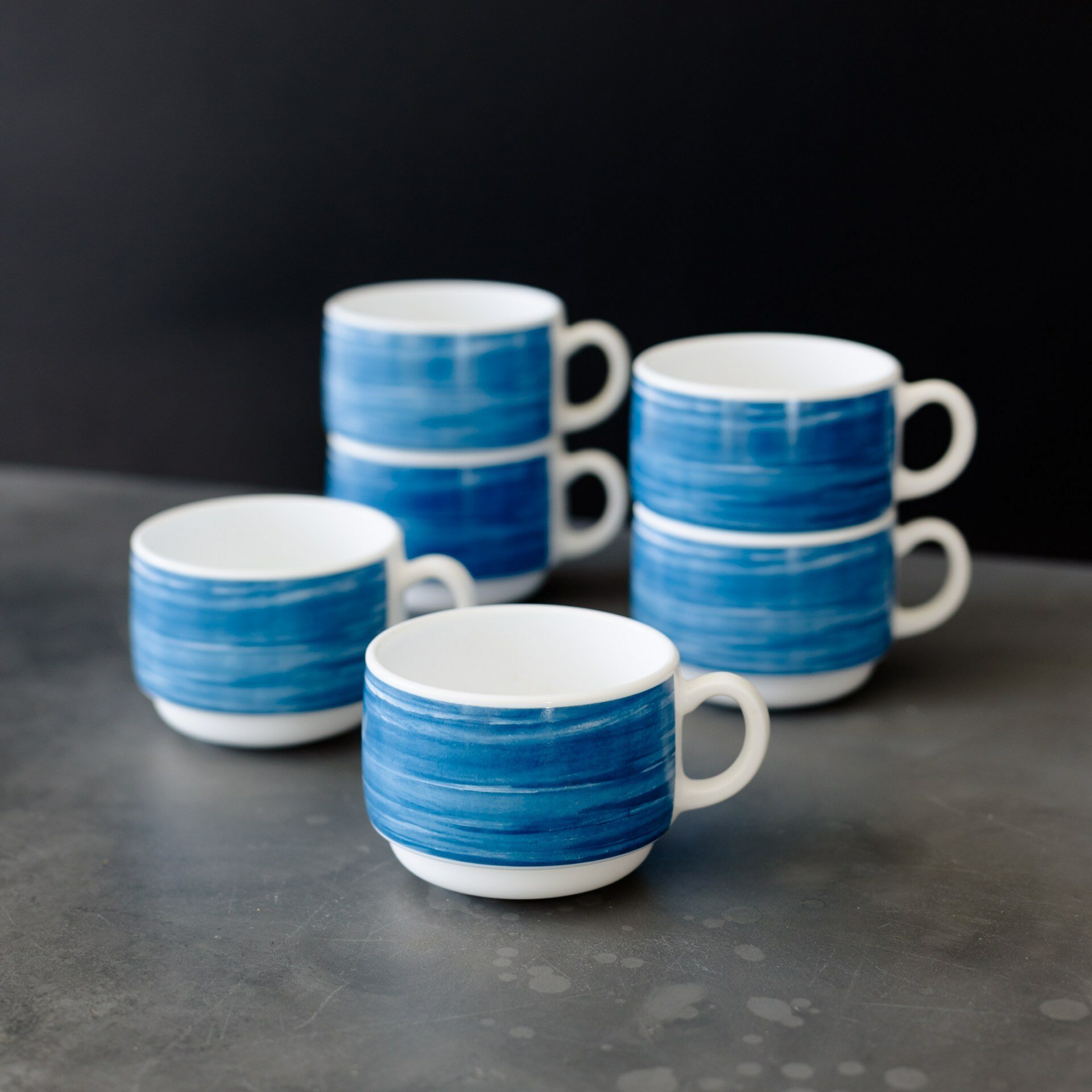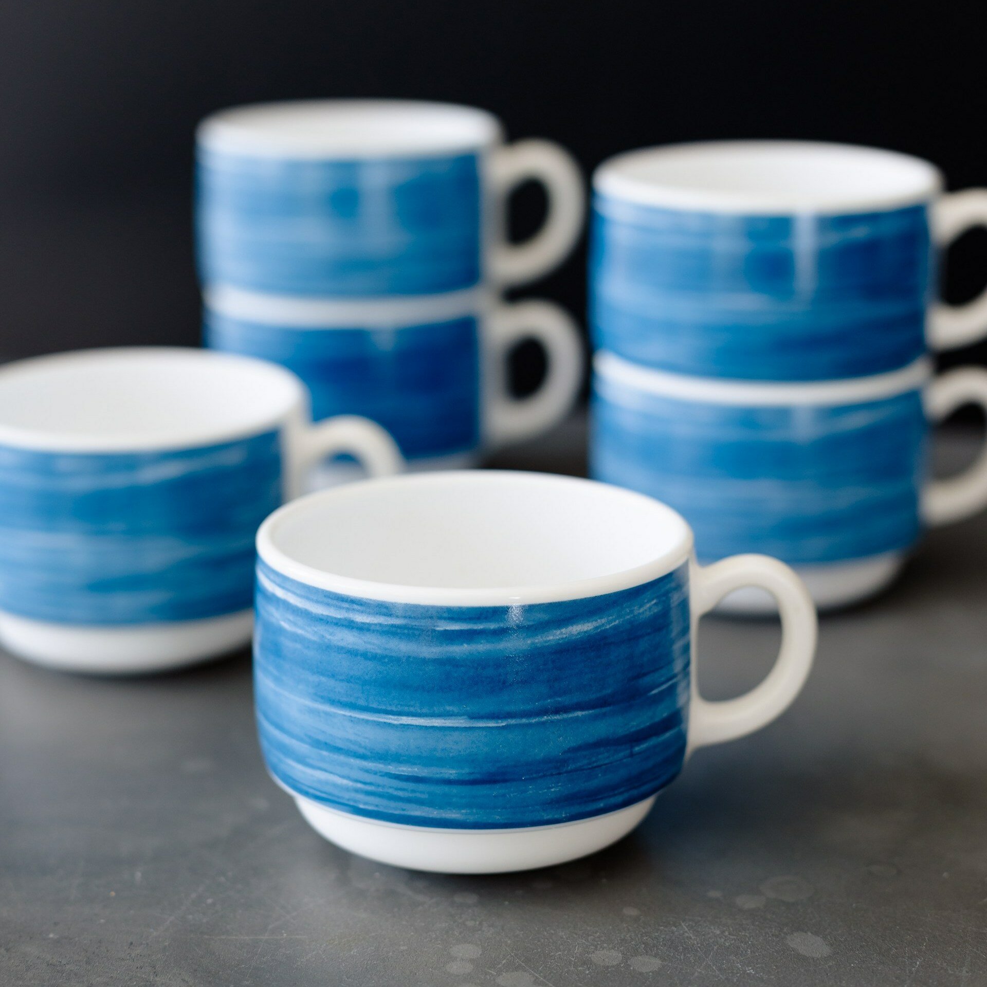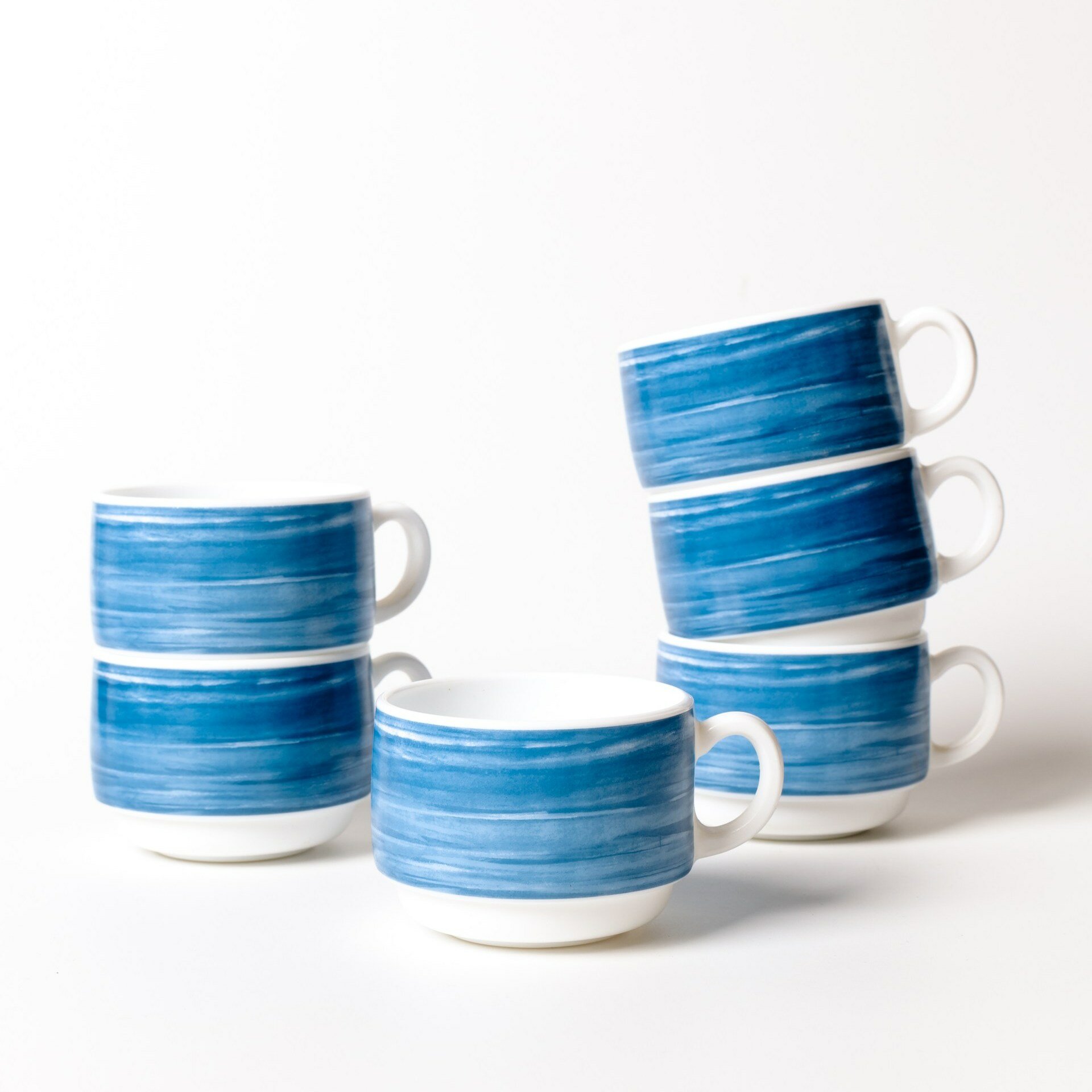 Купить Набор чашек чайных 190 мл. диаметр 7,6 см. высота 5,7 см, 6 шт, стеклокерамика, синий, Arcoroc Brush