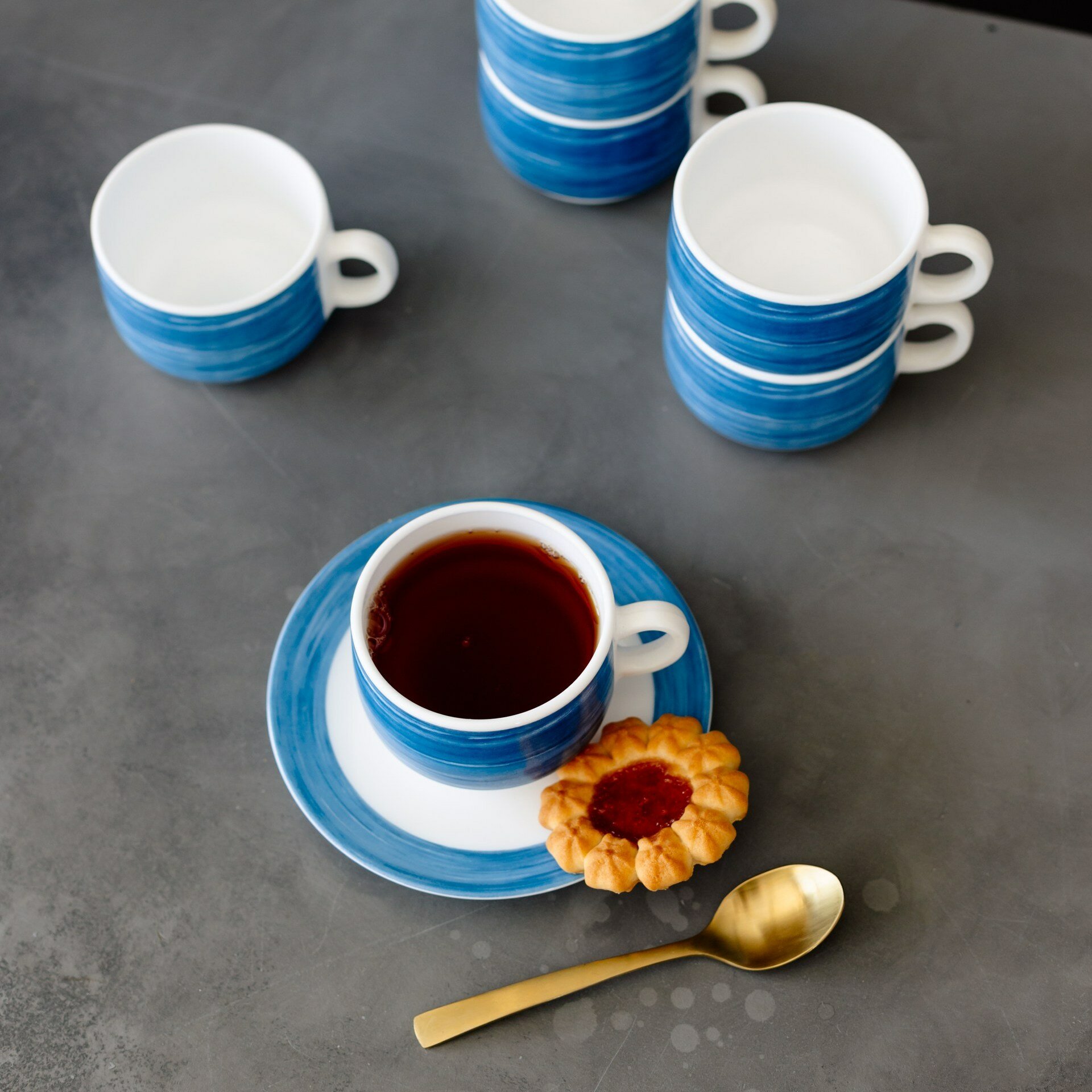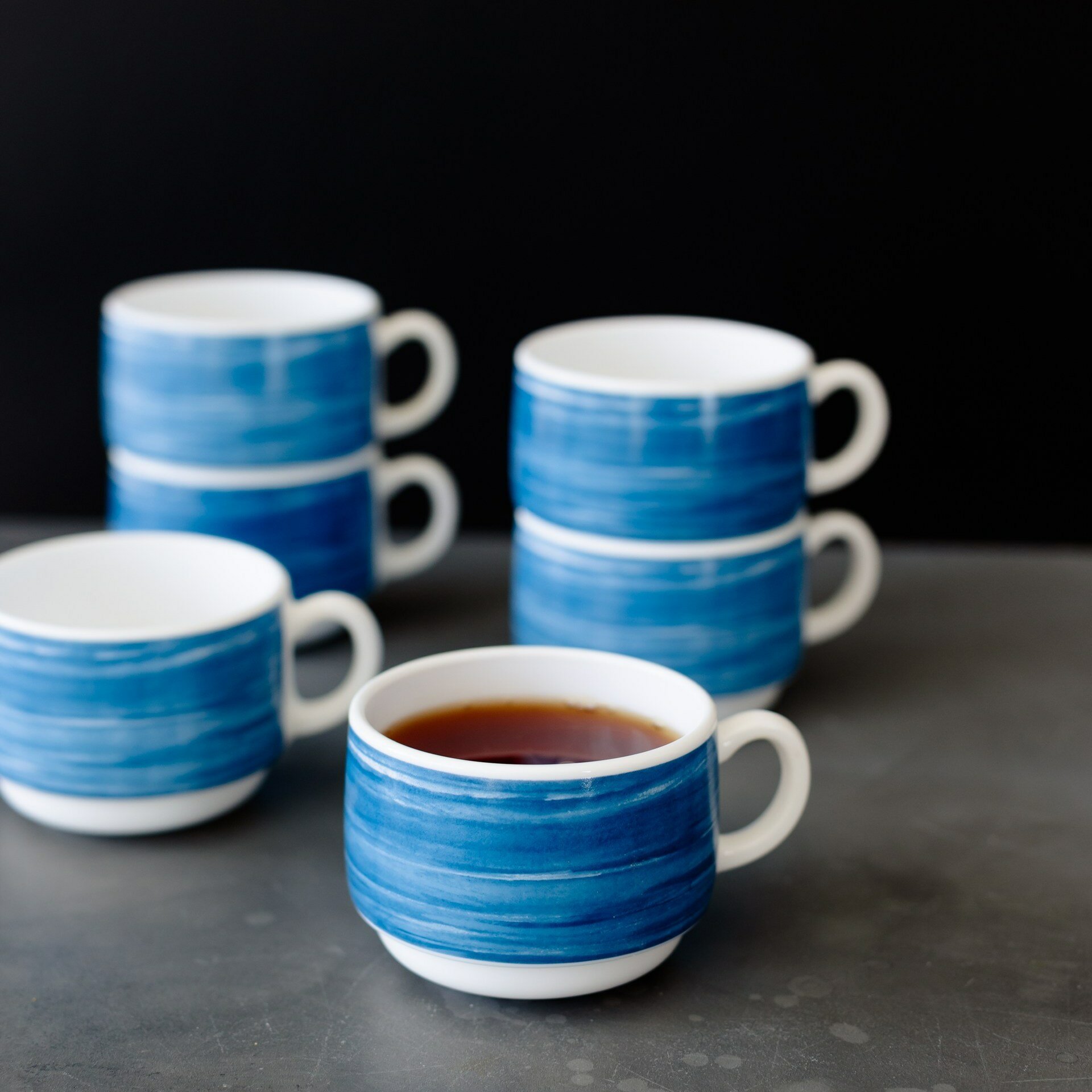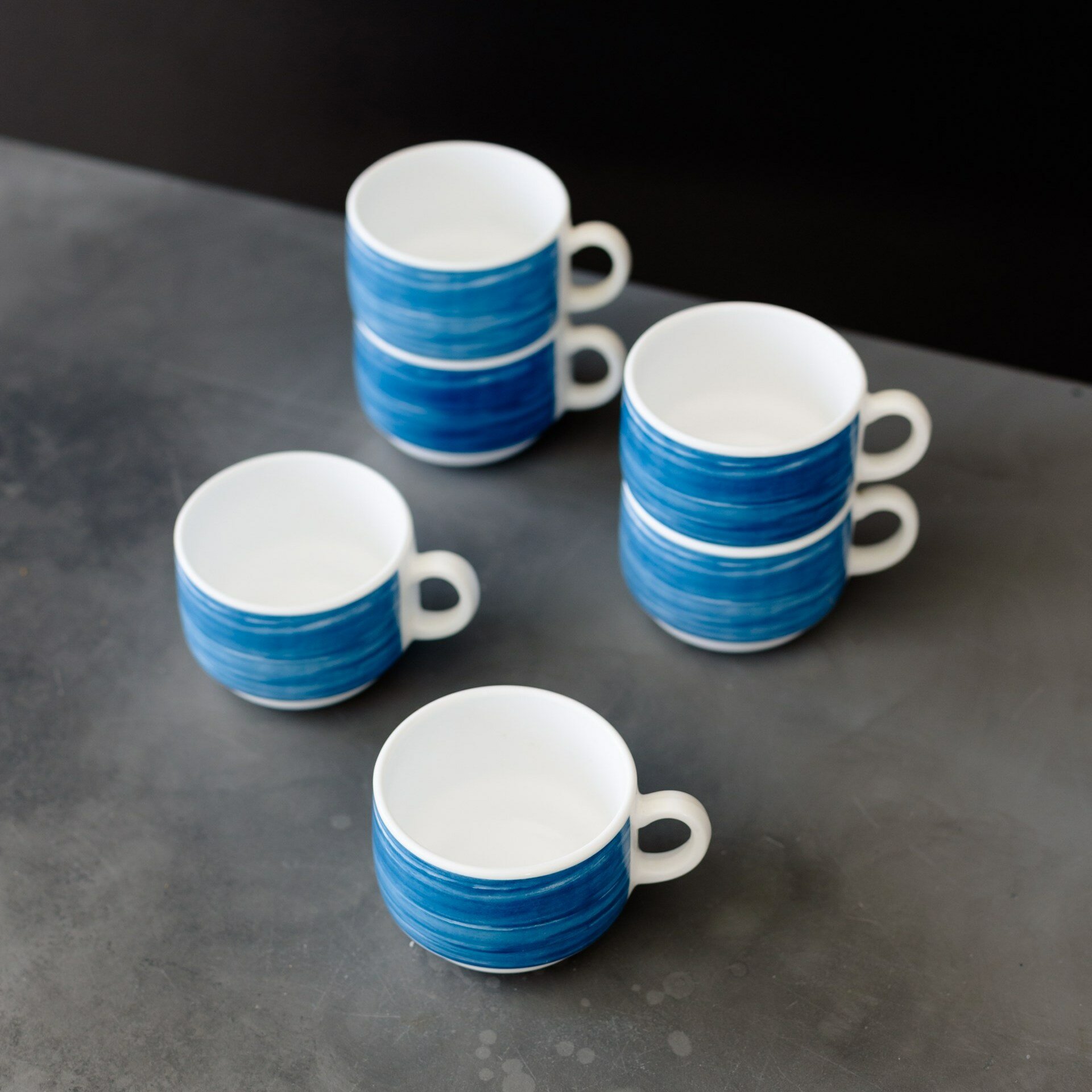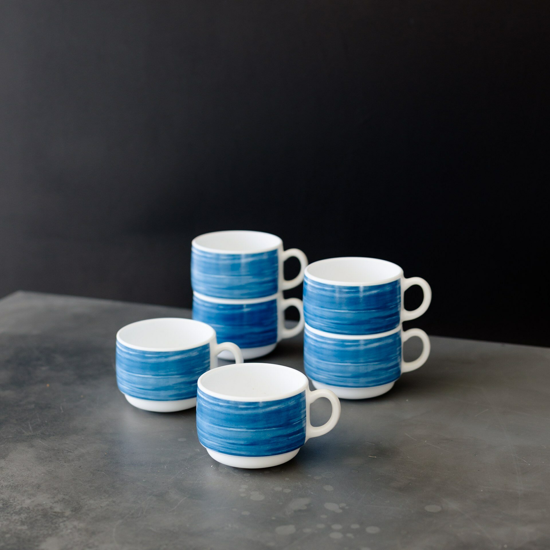 Купить Набор чашек чайных 190 мл. диаметр 7,6 см. высота 5,7 см, 6 шт, стеклокерамика, синий, Arcoroc Brush