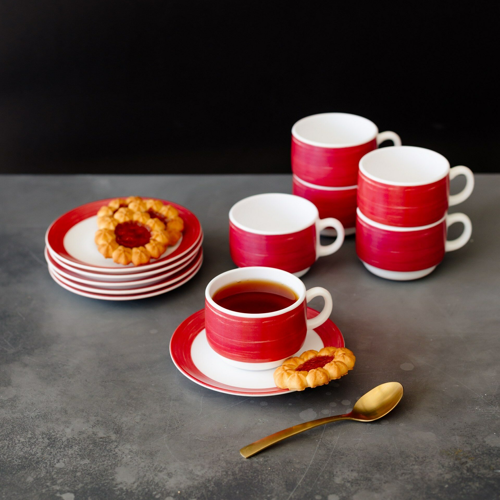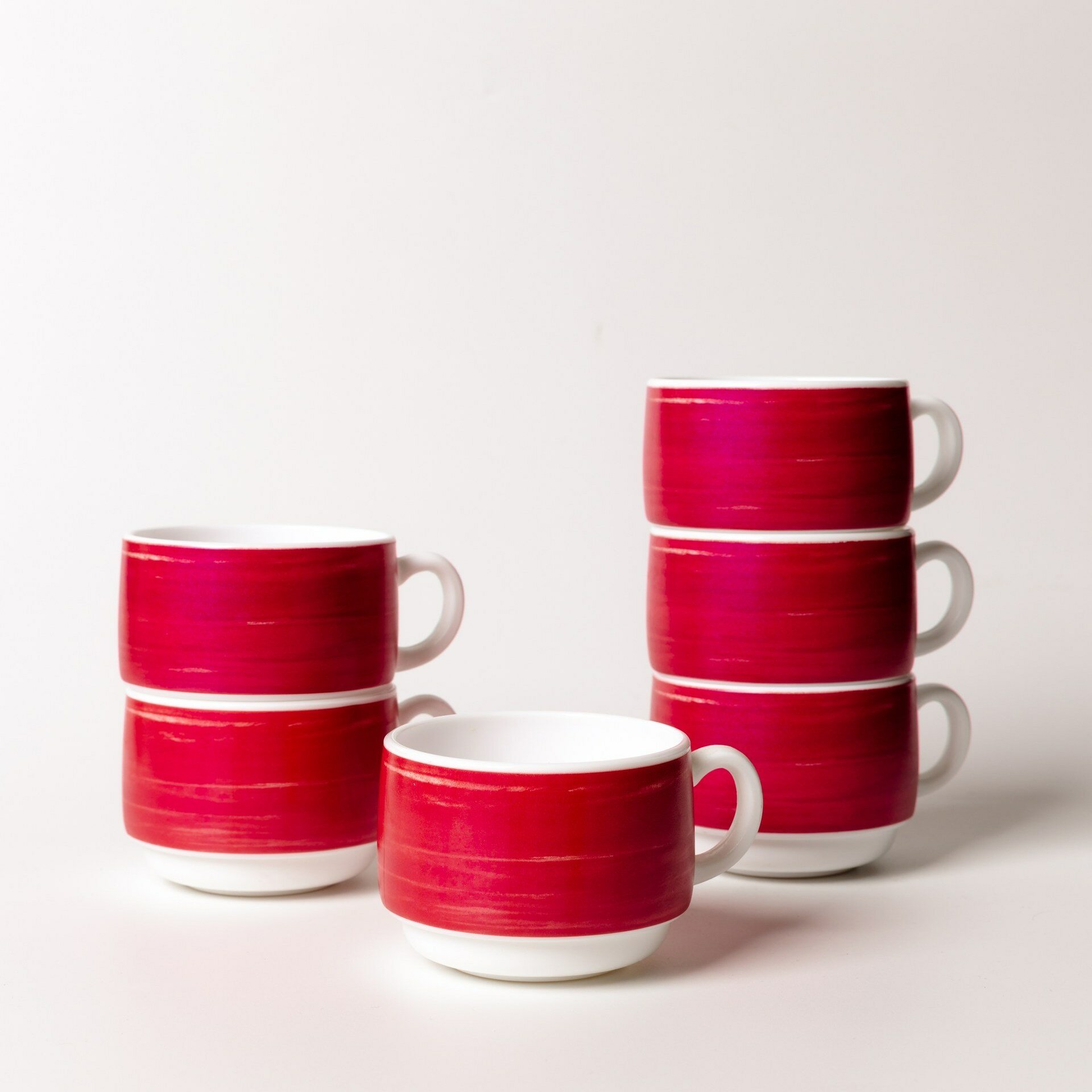 Купить Набор чашек чайных 190 мл. диаметр 7,6 см. высота 5,7 см, 6 шт, стеклокерамика, вишневый, Arcoroc Brush