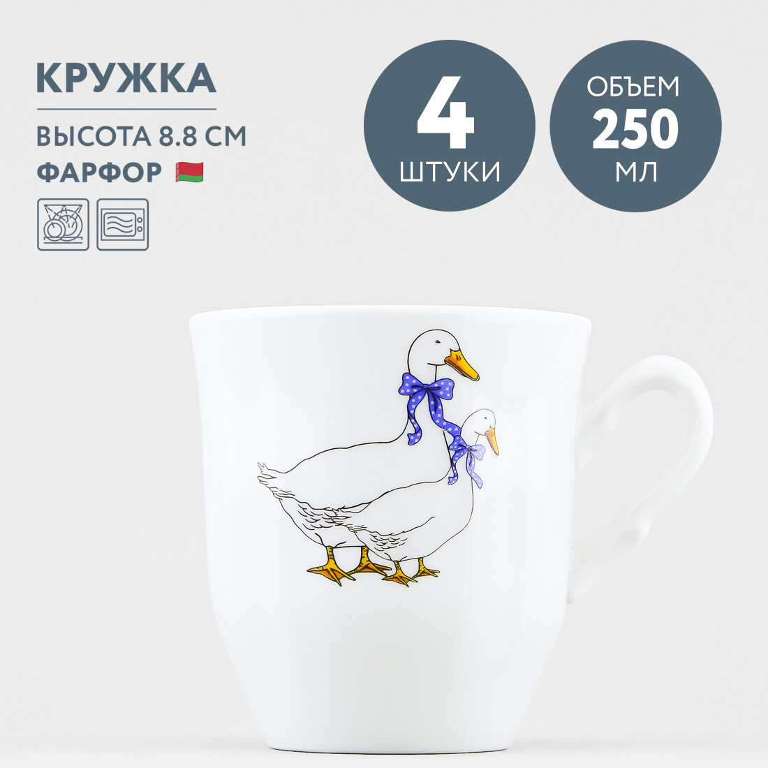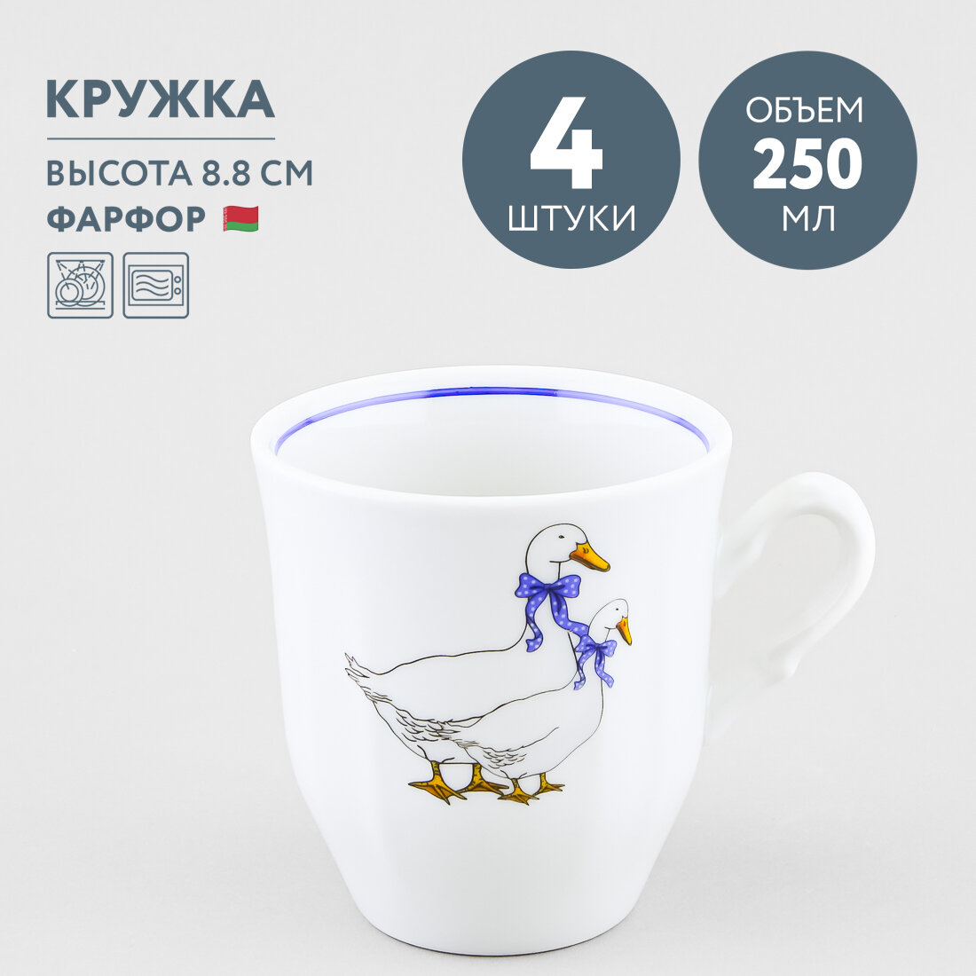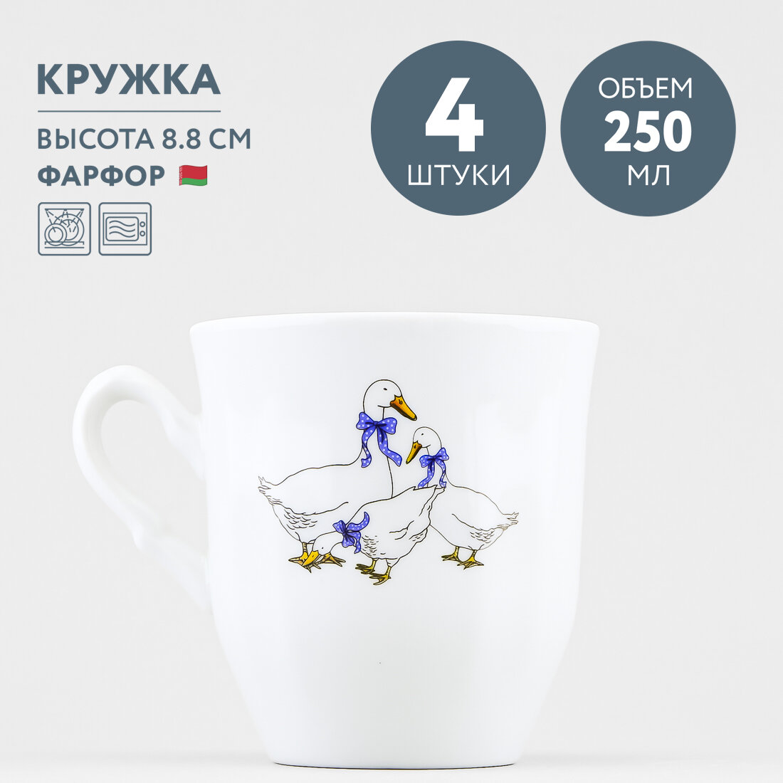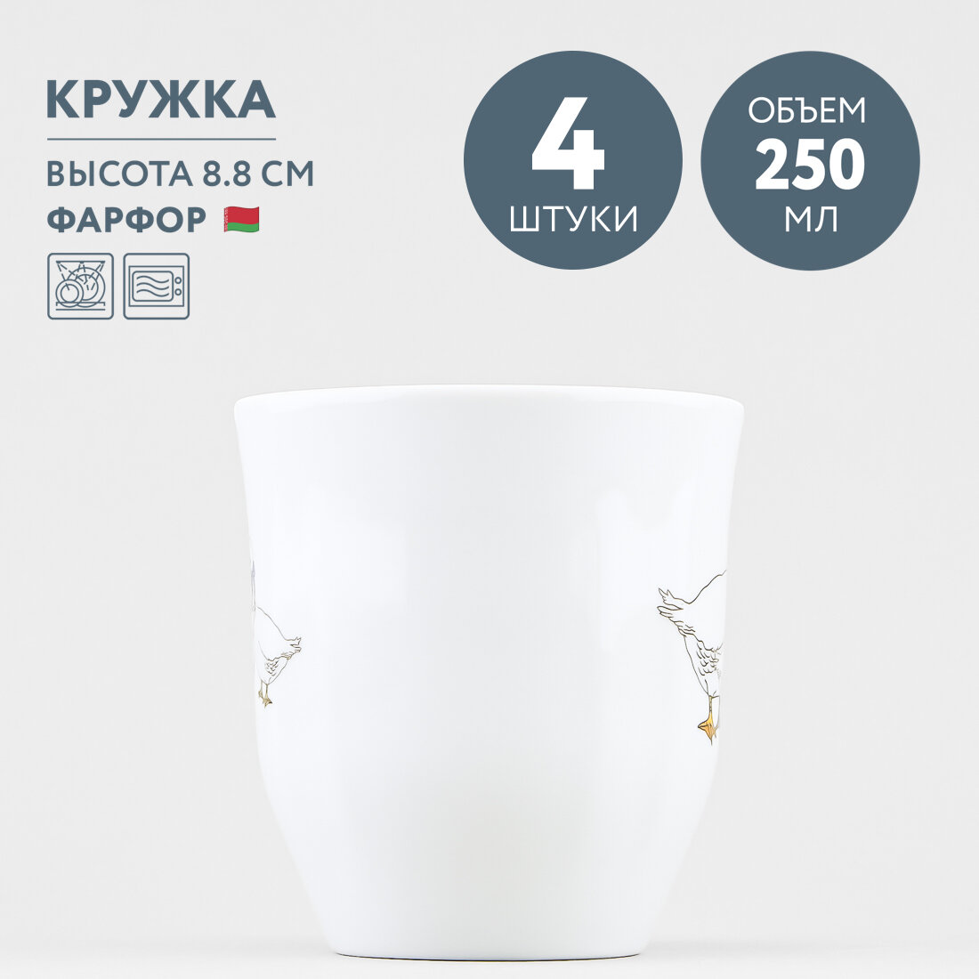 Набор из 4 кружек детских 250 мл Добрушский фарфор Гуси интересное: