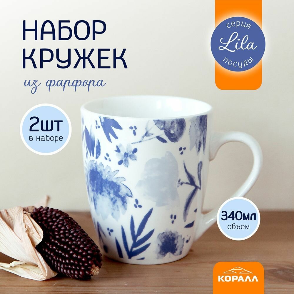 Набор кружек из фарфора 2шт 340мл "Lila", большие вместительные кружки для чая, кофе, какао интересное: