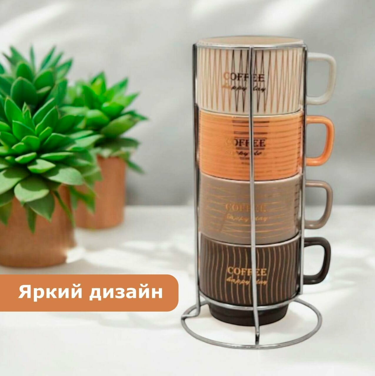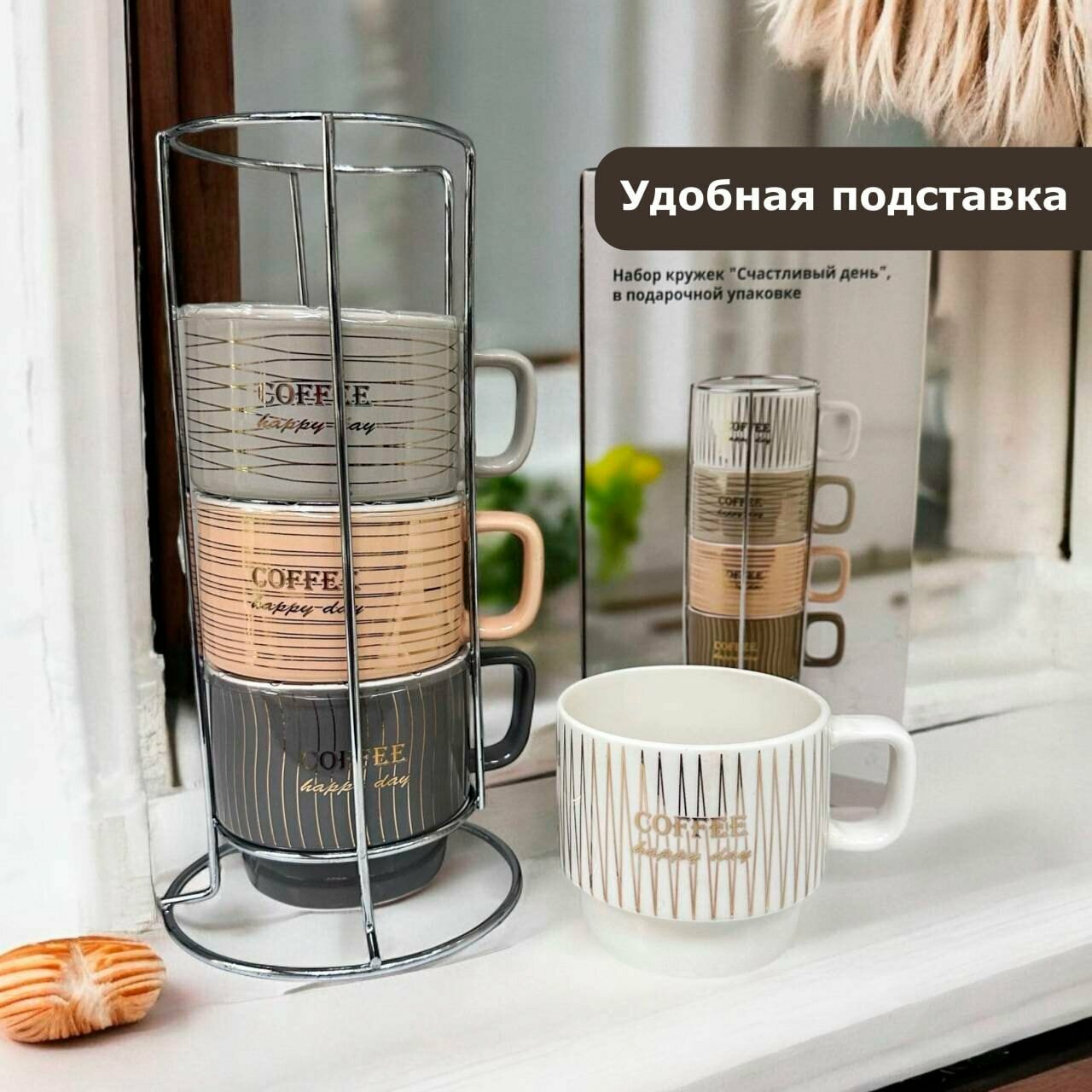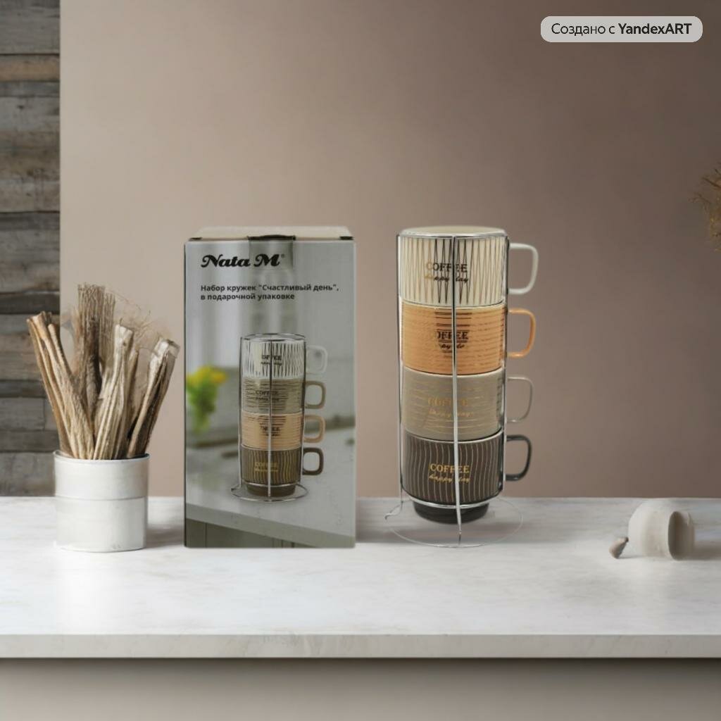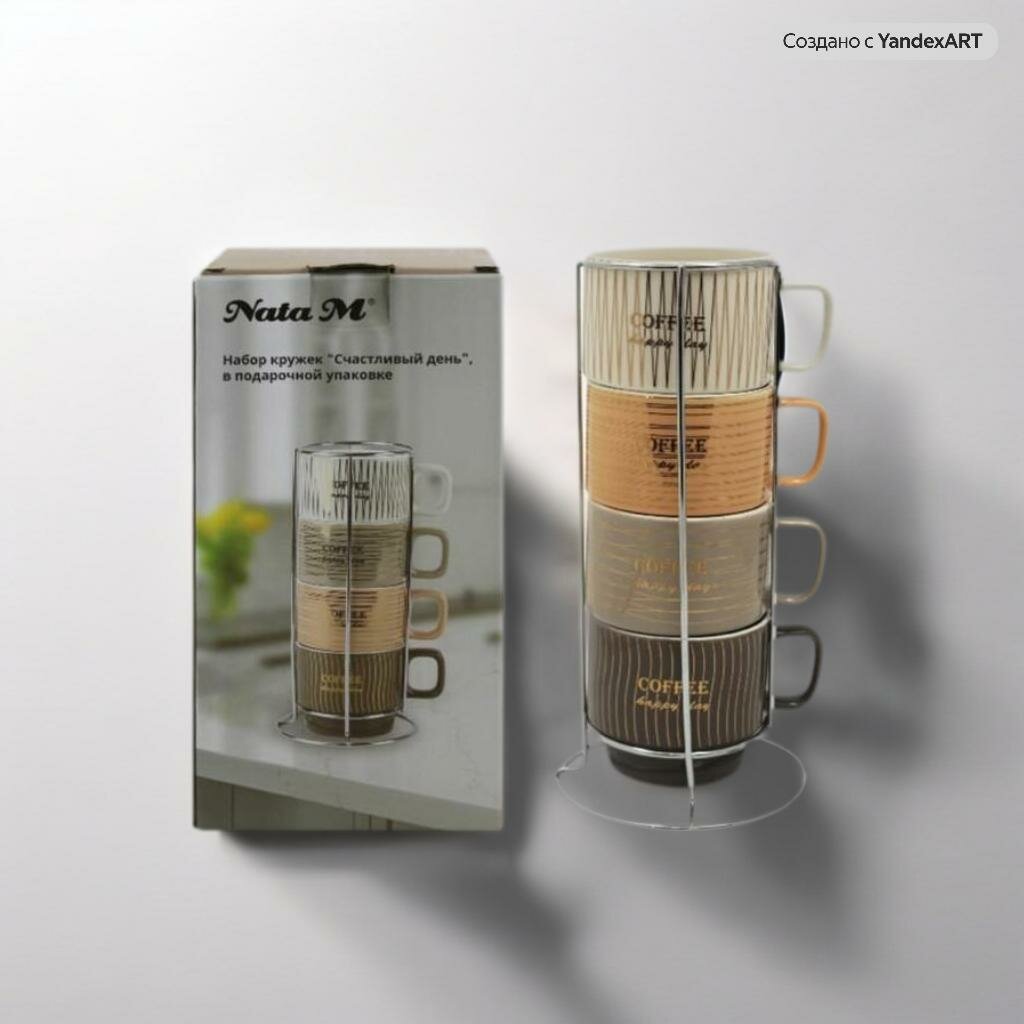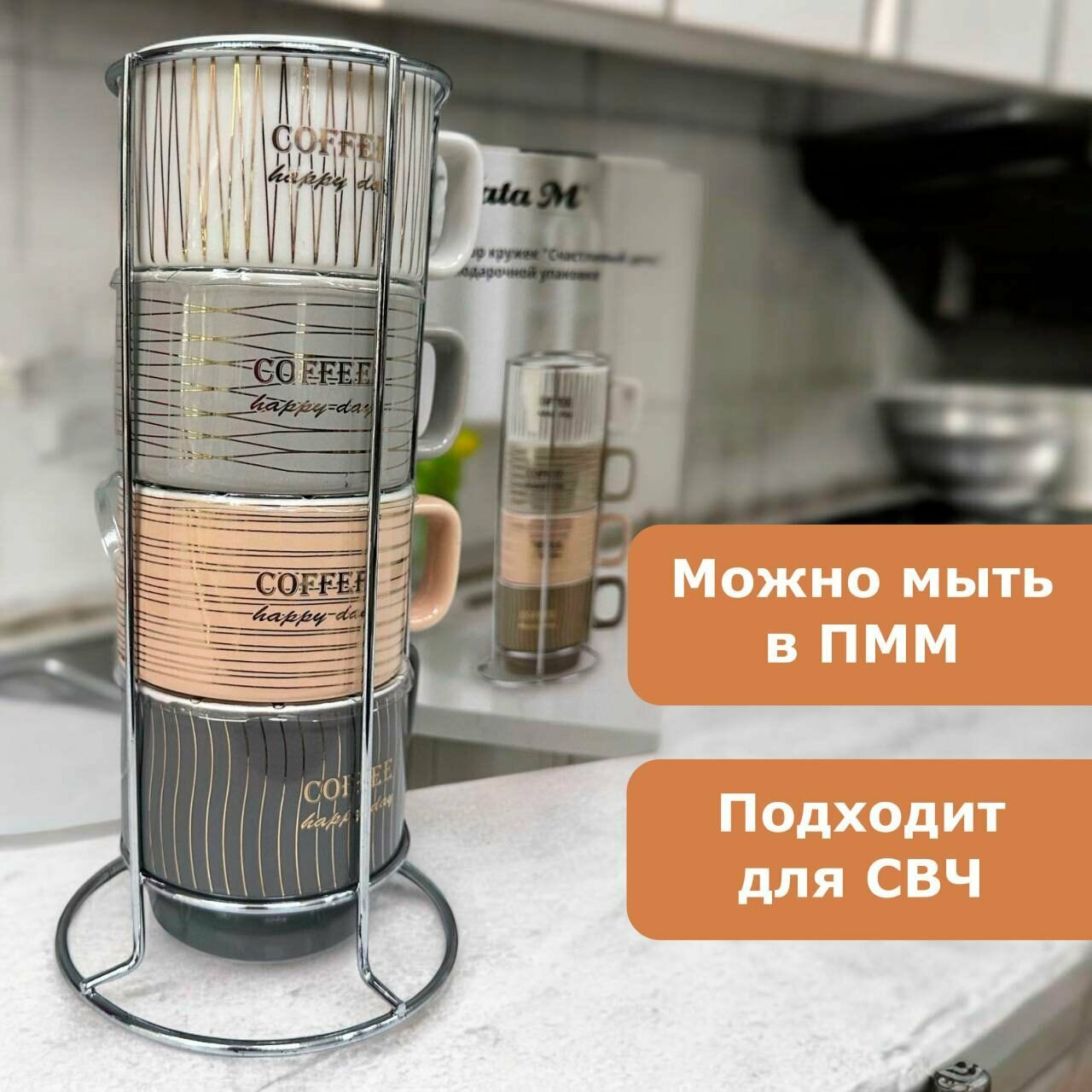 Набор кружек НатаМ Счастливый день 4 шт фарфор 200 мл мультиколор интересное: