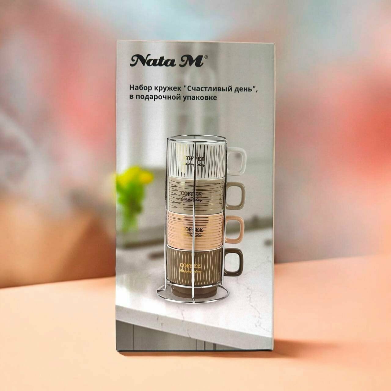 Купить Набор кружек НатаМ Счастливый день 4 шт фарфор 200 мл мультиколор