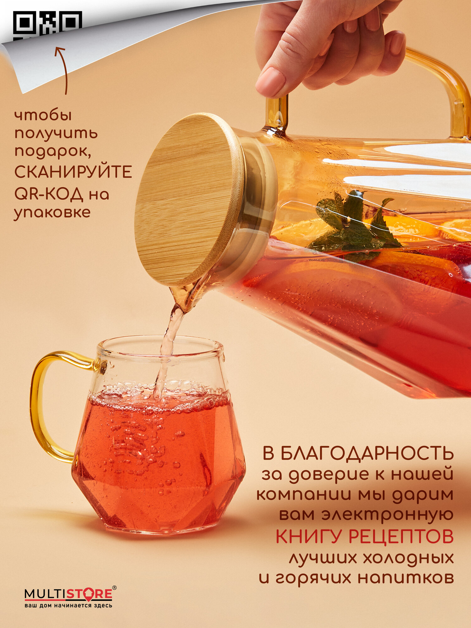 Графин (кувшин) стеклянный для воды с крышкой фильтром из бамбука и стали термостойкий для холодных и горячих напитков интересное: