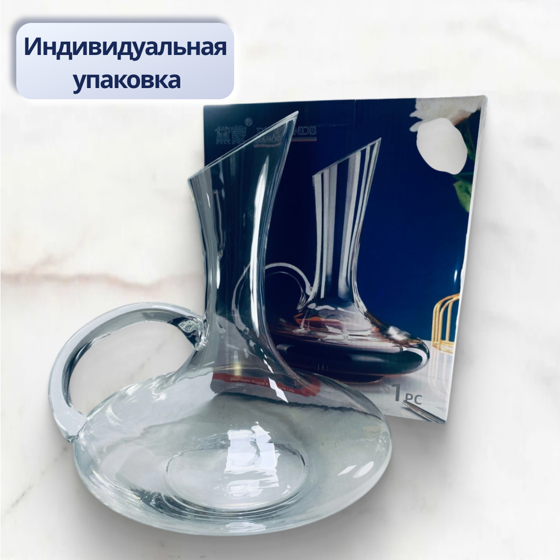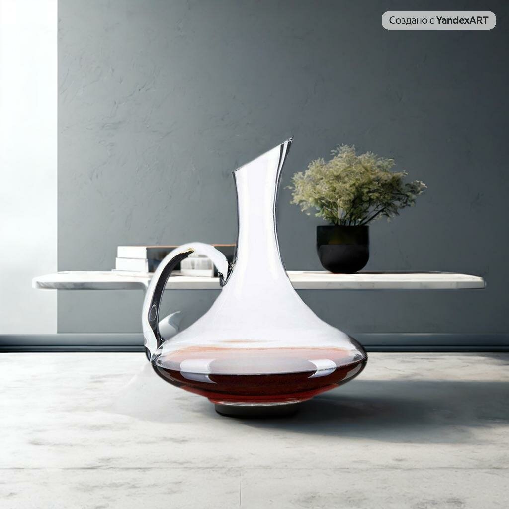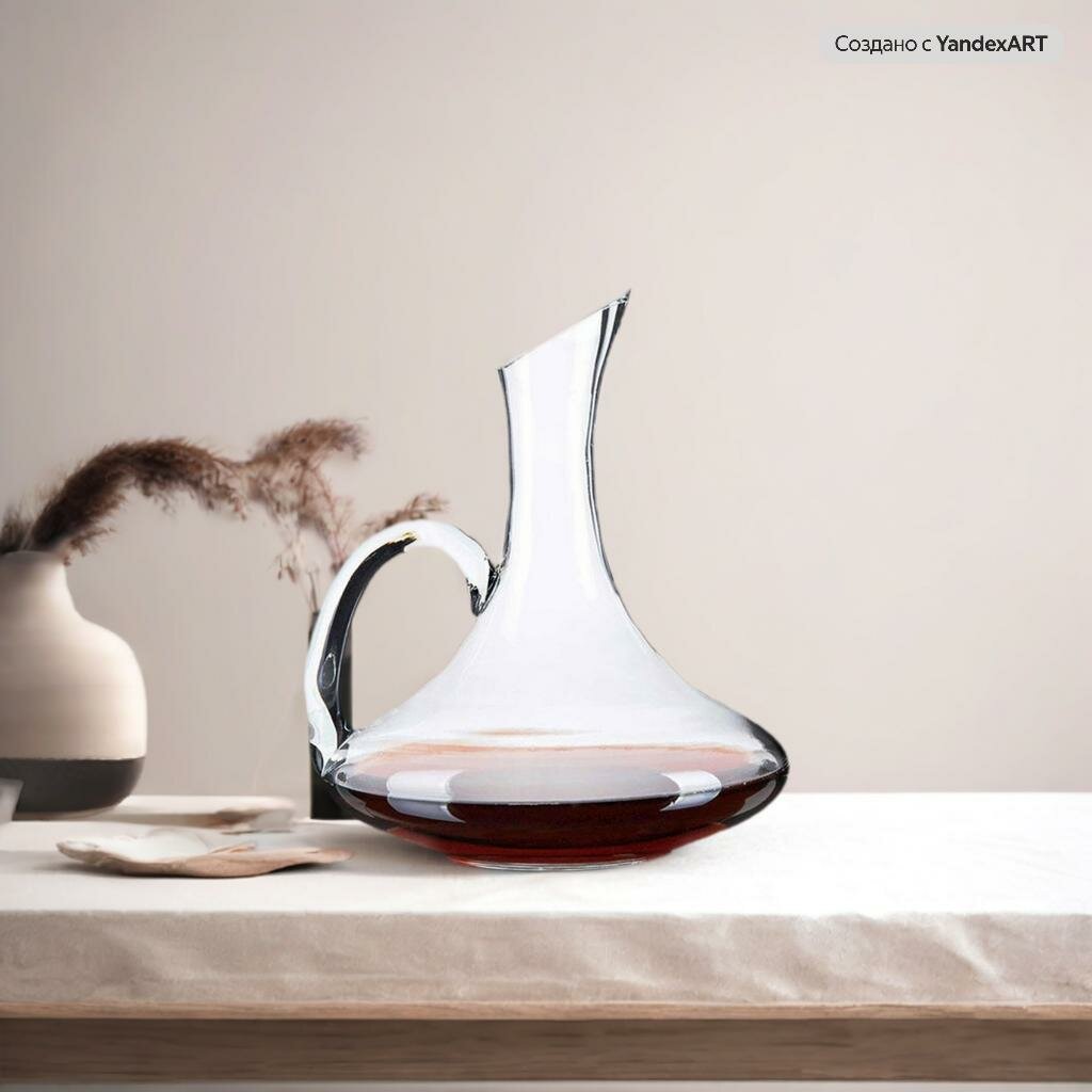 Графин 1800 мл. , декантер для вина с ручкой, аксессуар для напитков, стекло интересное: