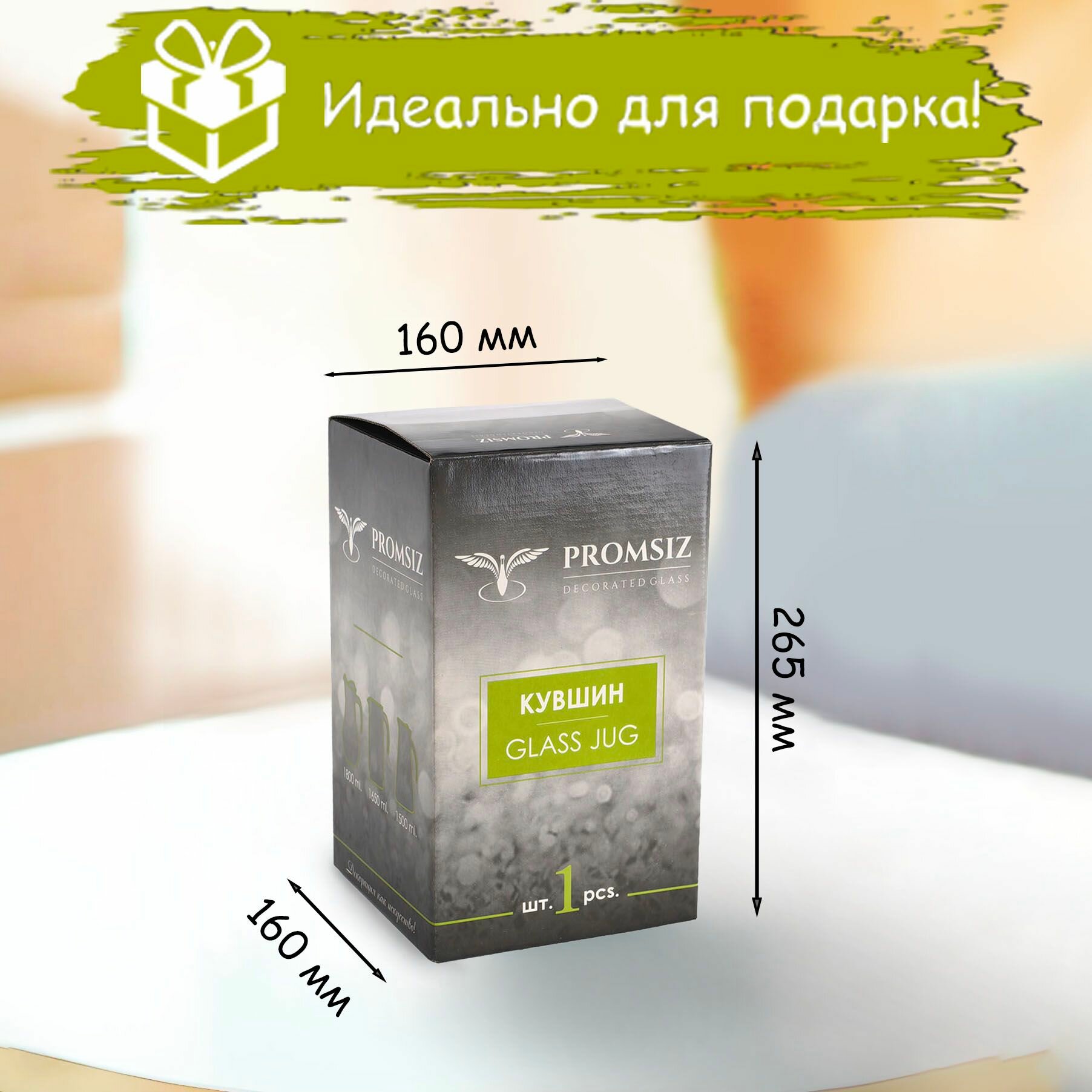 Кувшин для воды стеклянный PROMSIZ Настроение в подарочной упаковке / 1800 мл, 1 шт.