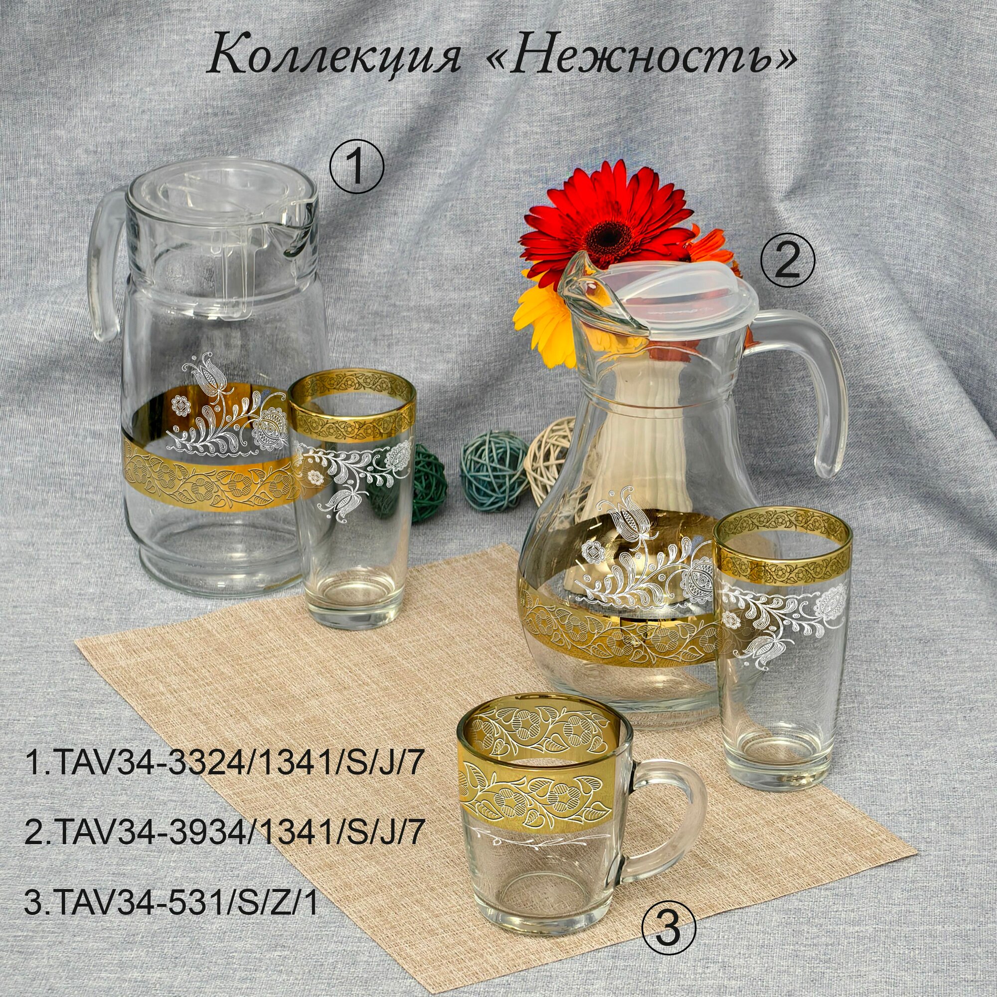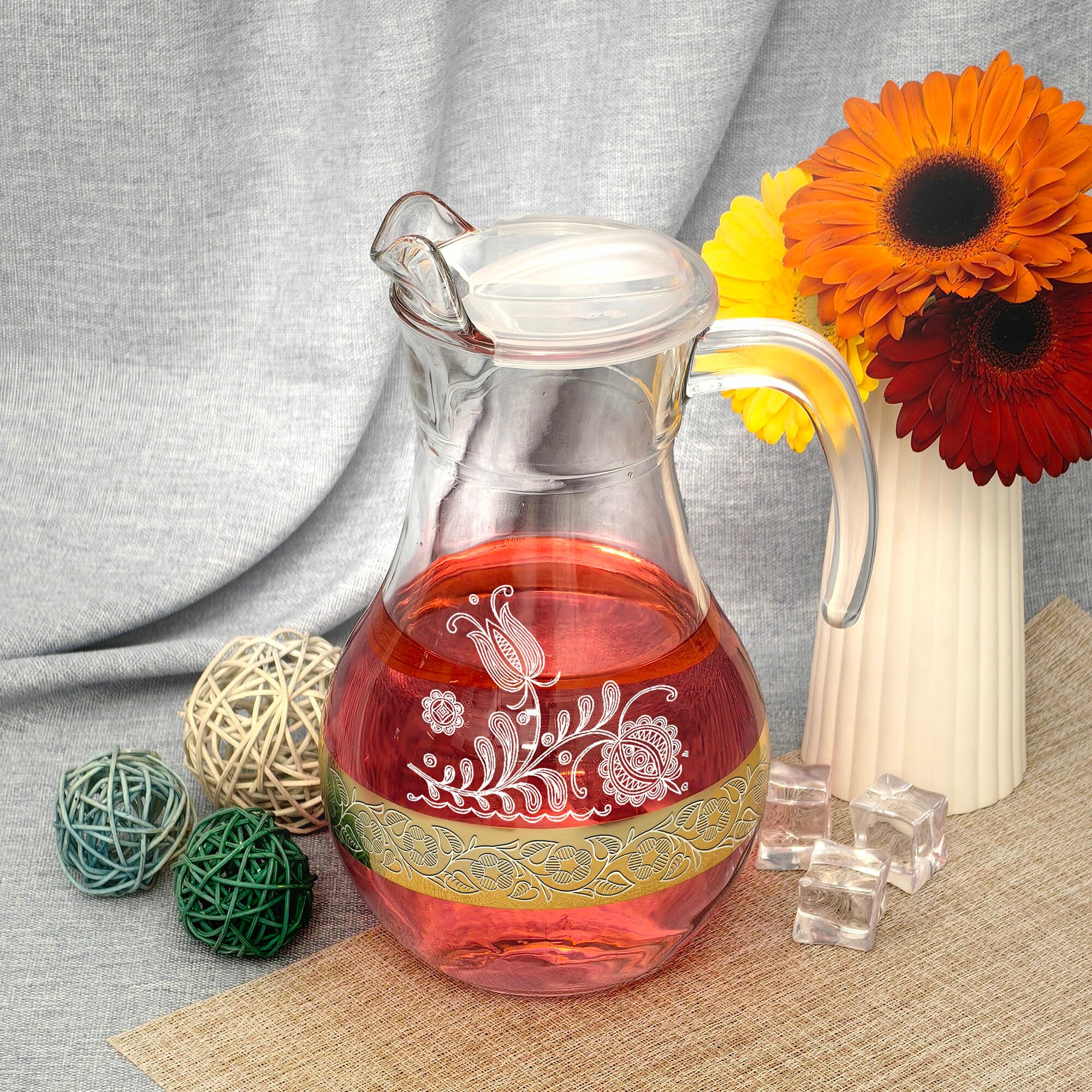 Кувшин для воды стеклянный в подарочной упаковке с алмазной гравировкой PROMSIZ нежность, 1650 мл, 1 шт.