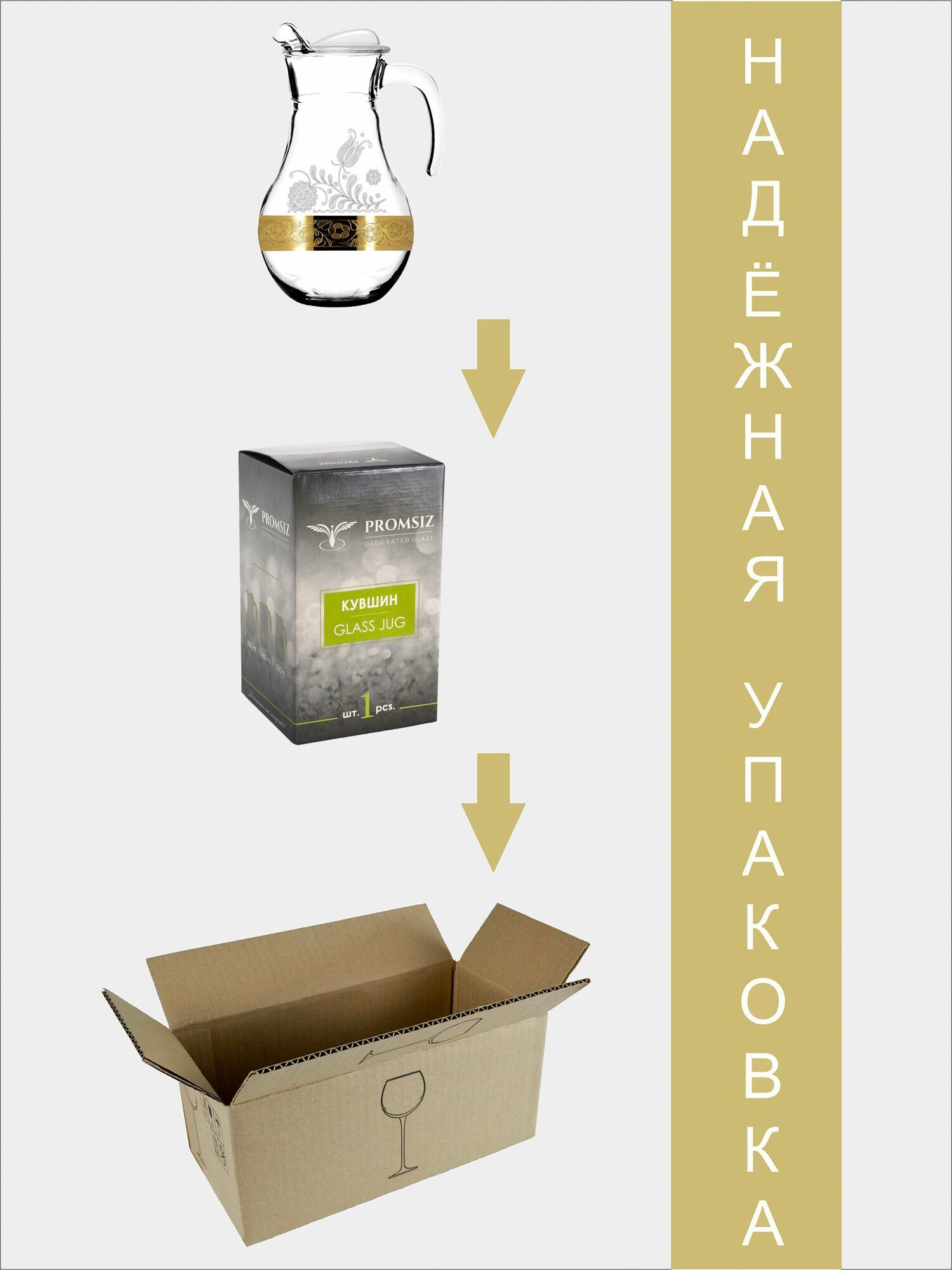Кувшин для воды стеклянный PROMSIZ Версаль в подарочной упаковке / 1800 мл, 1 шт.
