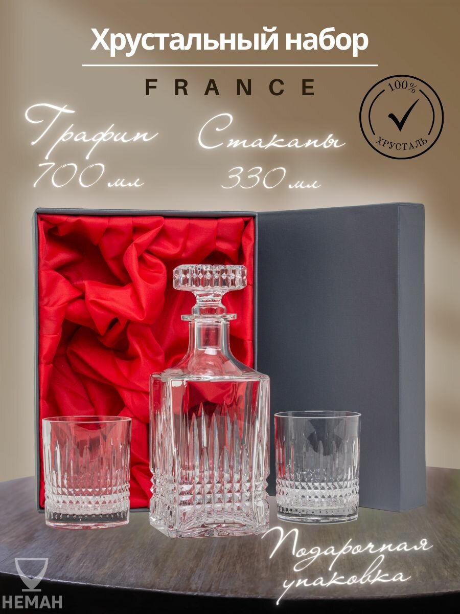 Набор для виски хрустальный "FRANCE" : Графин 700мл + Стаканы 2 шт 330 мл интересное: