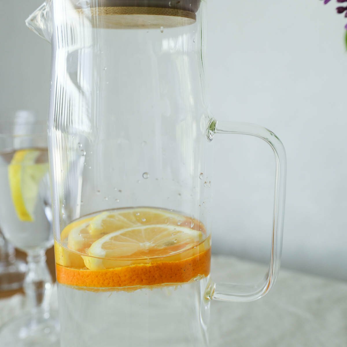 Кувшин стеклянный с бамбуковой крышкой 1300 мл для воды и лимонада интересное: