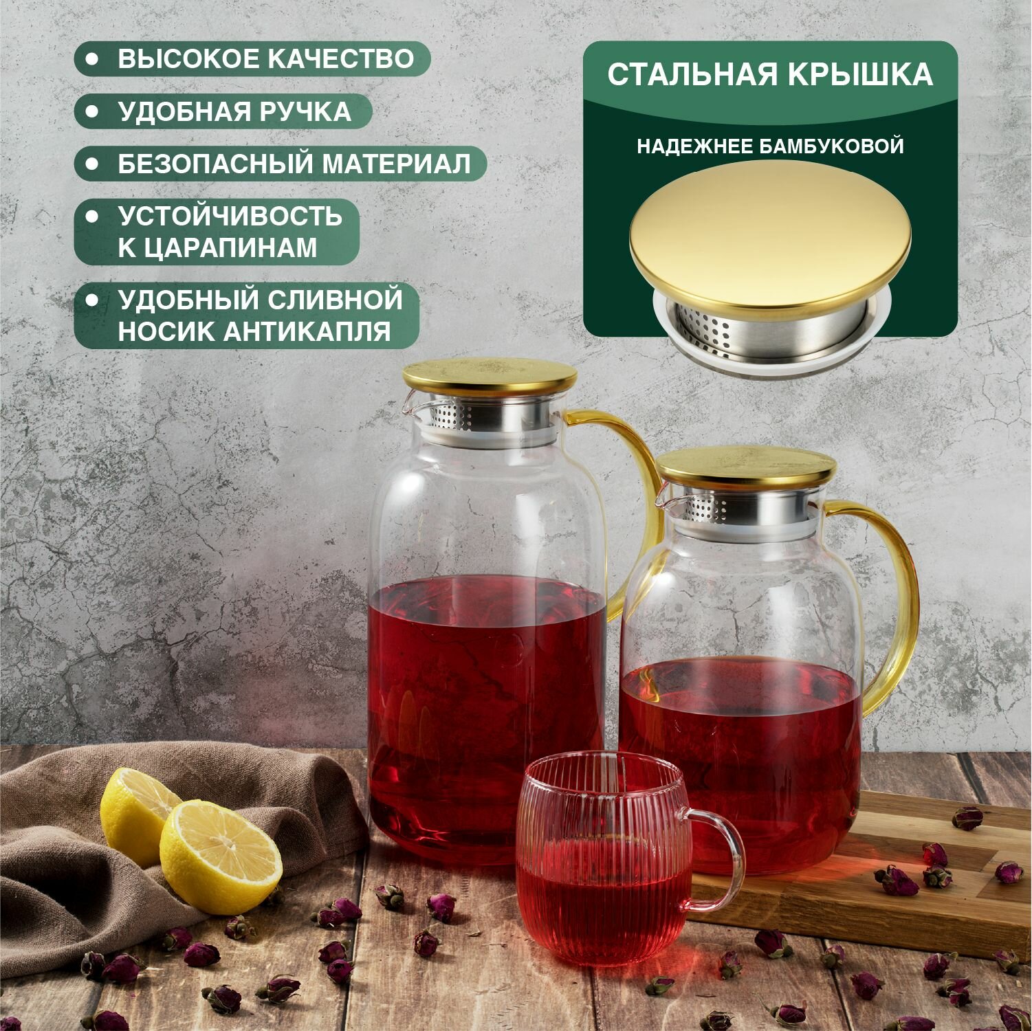 Кувшин для воды 2,5 л стеклянный, графин для воды с фильтром интересное: