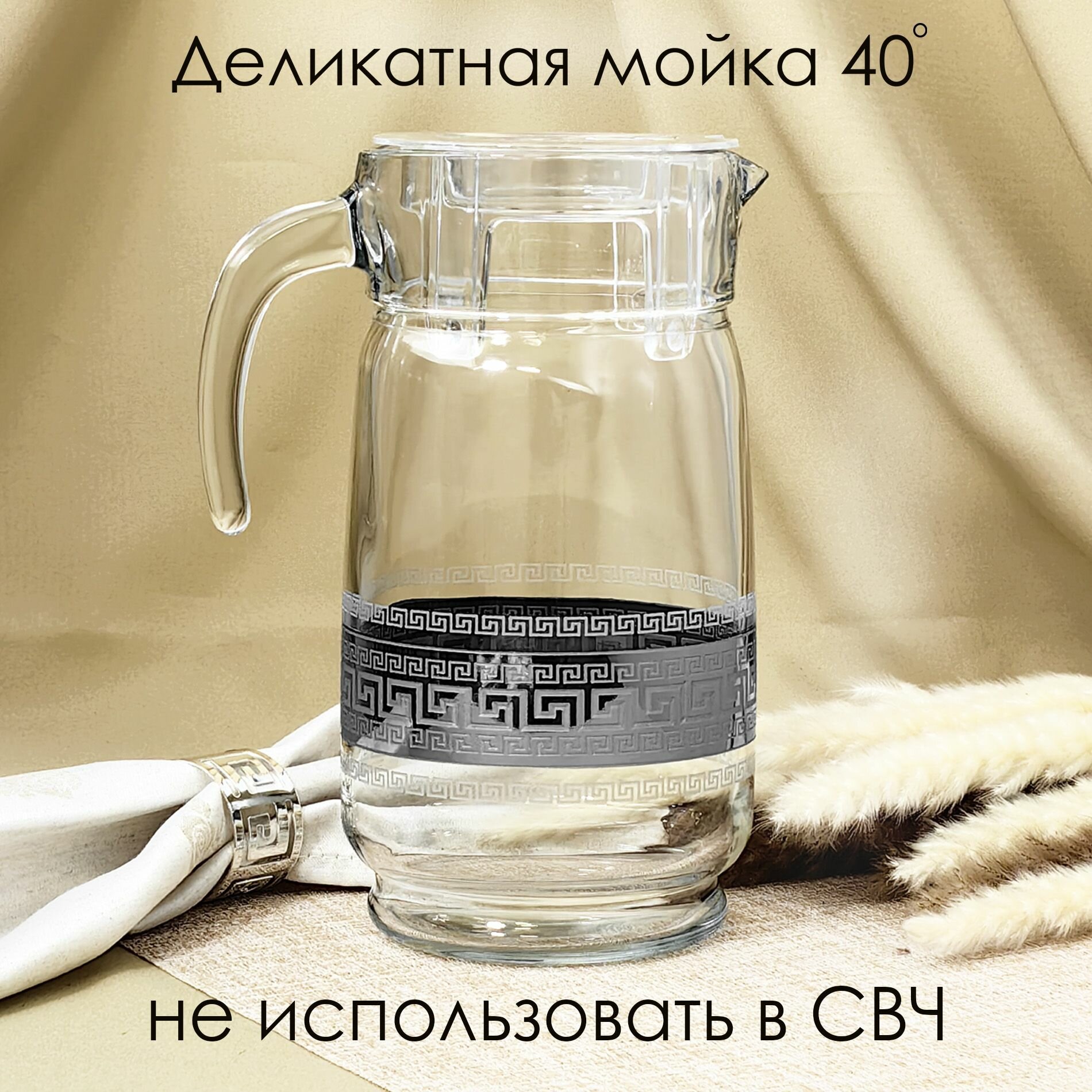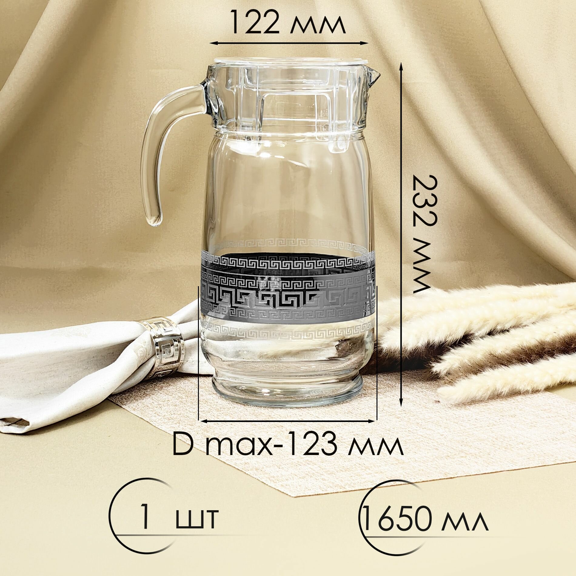 Кувшин для воды стеклянный PROMSIZ Греческий узор в подарочной упаковке / 1650 мл, 1 шт.