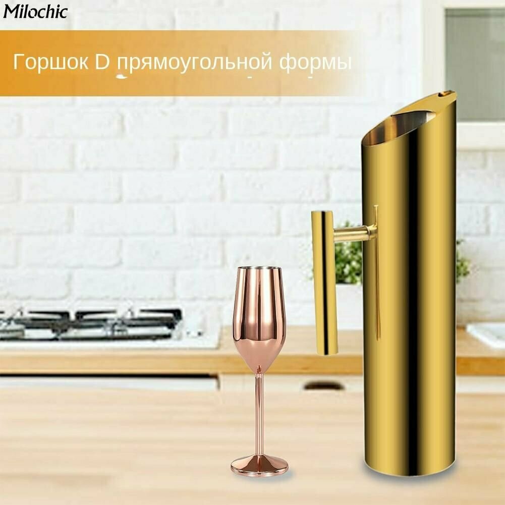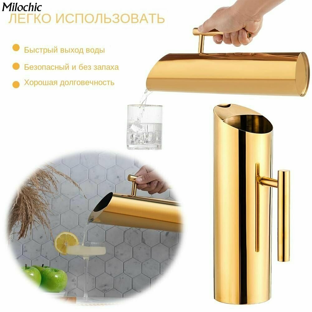 Бутылка для воды, Кувшин, нержавеющая сталь, для дома, бара, пикника и путешествий, 1.5л, золотая стильная интересное: