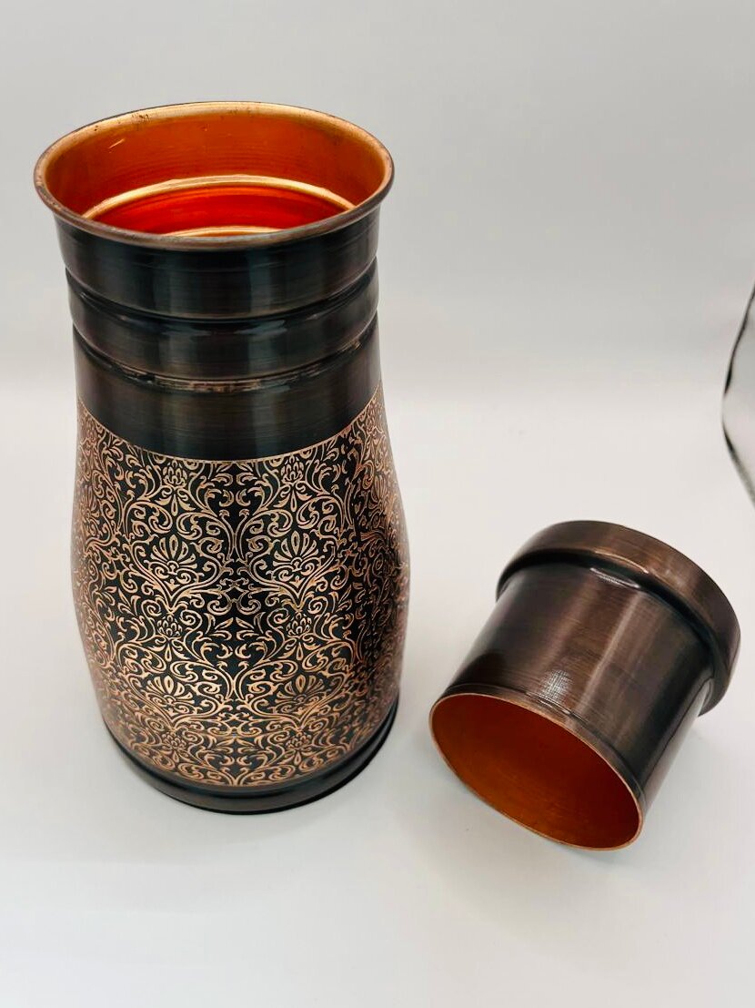 Купить Кувшин Медный Антик со стаканом крышкой, Индия, ручная работа