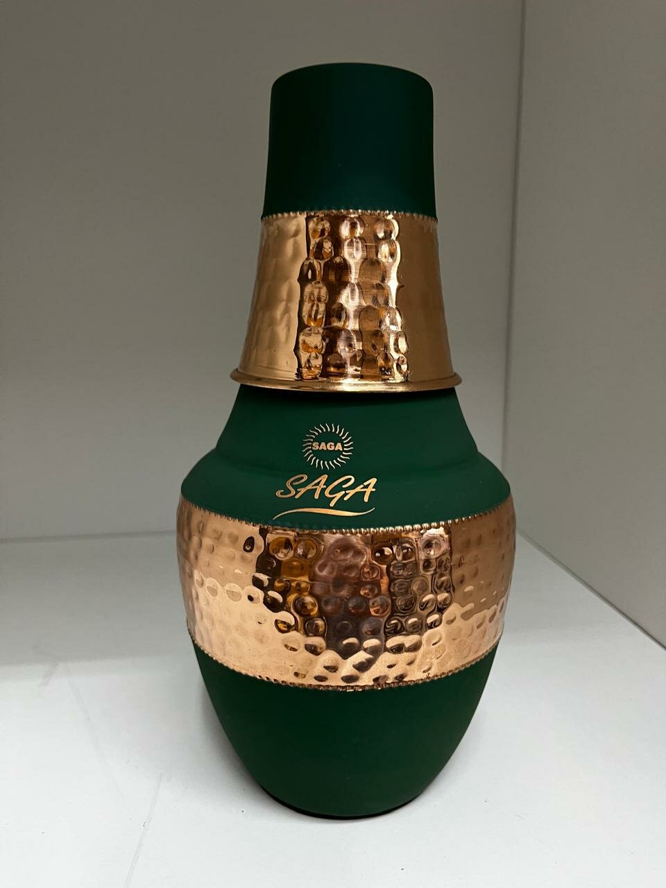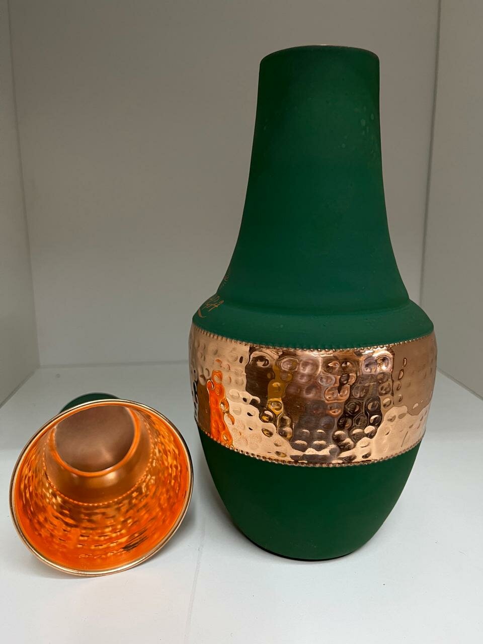 Купить Набор Кувшин медный + стакан-крышка, чеканка и матовое покрытие Изумруд, Ручная работа Премиум класс