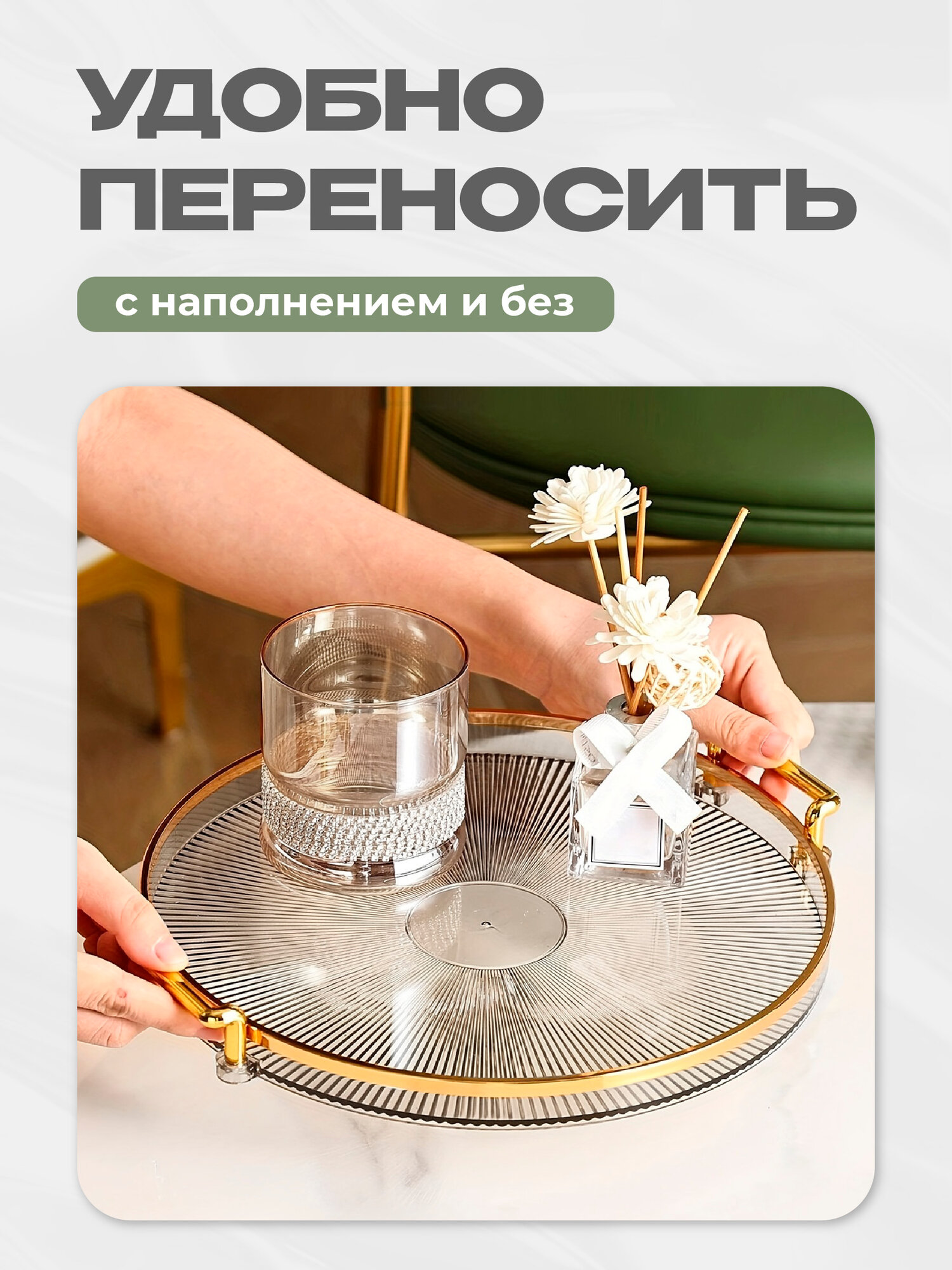 Поднос декоративный на кухню пластиковый с ручками Shiny Kitchen, набор интересное: