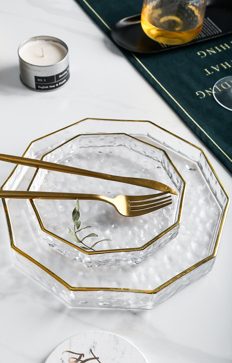 Купить Поднос сервировочный, стеклянный, фактурный, малый с бортиками