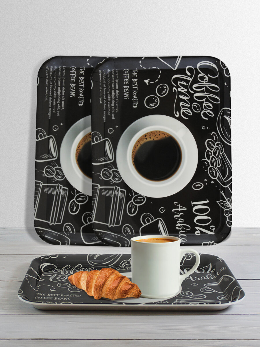 Купить Подносы НатаМ пластиковый прямоугольный 33х24,5 см набор 2шт Время для кофе