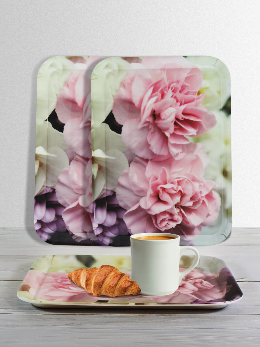Купить Подносы НатаМ пластиковый прямоугольный 33х24,5 см набор 2шт Гвоздика