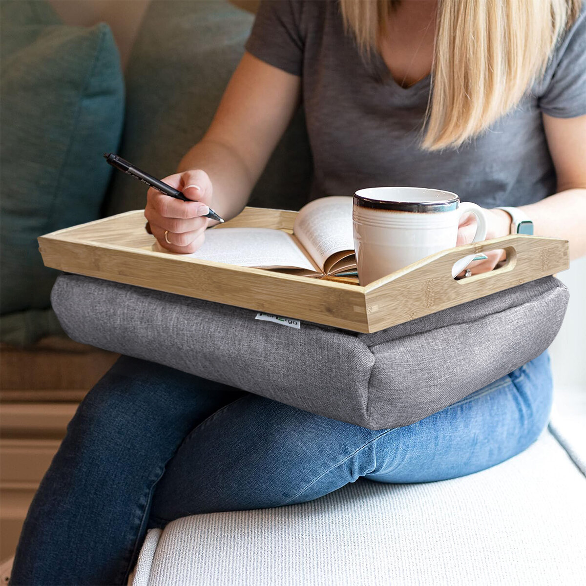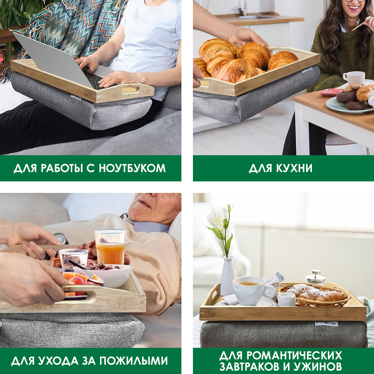 Купить Поднос деревянный на подушке, столик для завтрака в постель, столик для ноутбука в кровать