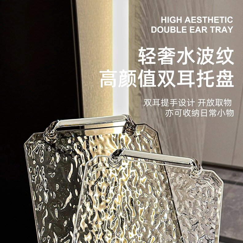 Поднос "Водяная Рябь", серебристый, прозрачный, прямоугольный, высококачественный