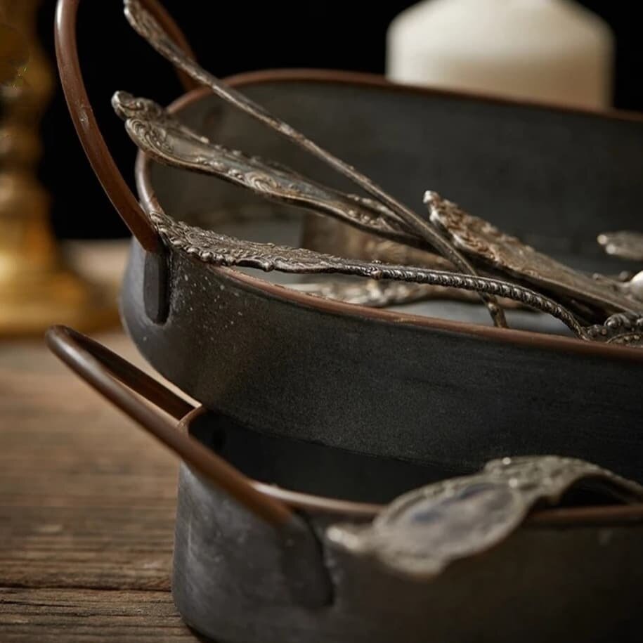 Купить Набор подносов овальных M+L (30 см +35 см), винтажный поднос металлический