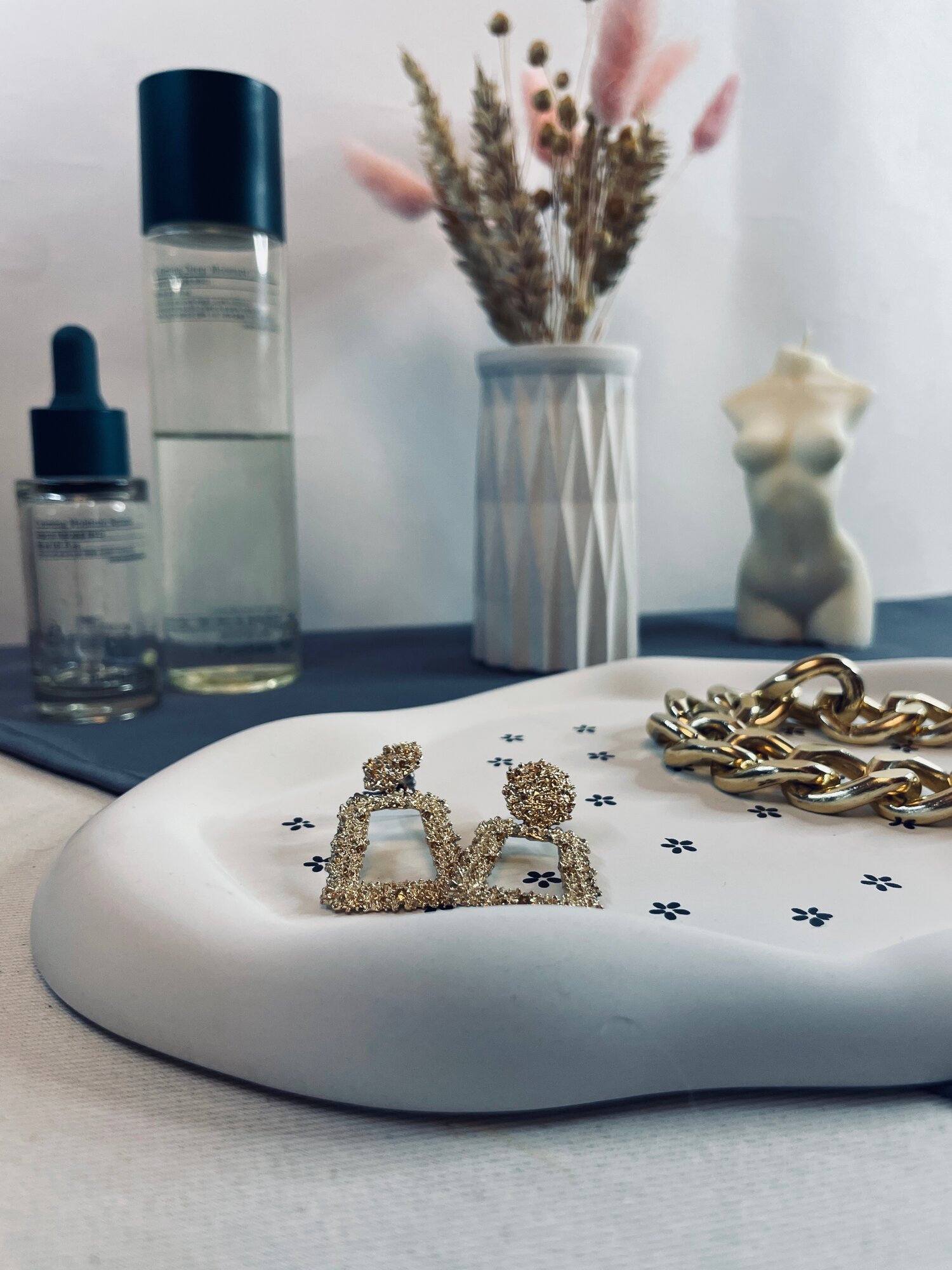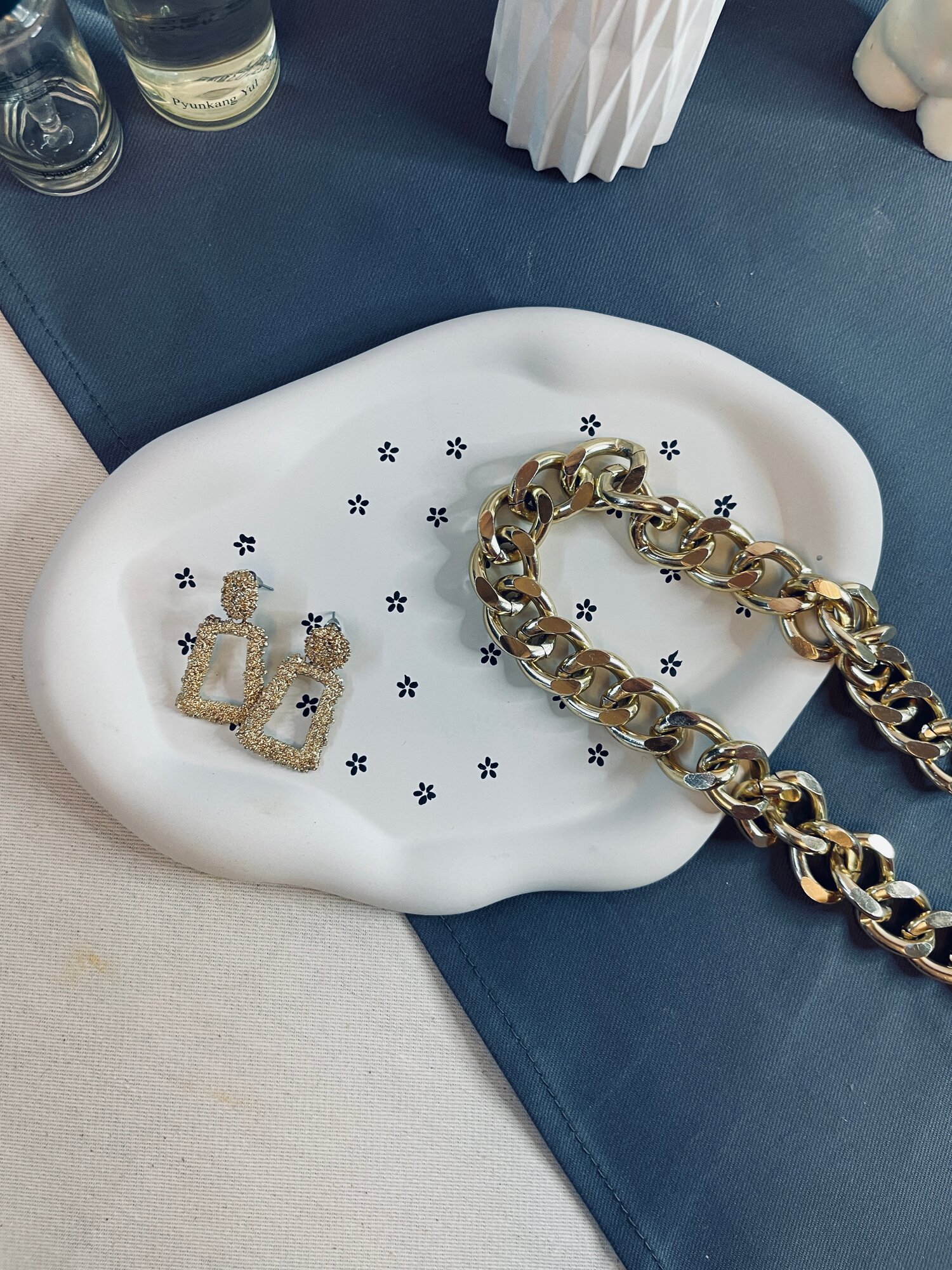 Гипсовый поднос "Облако" для свечей и украшений, овальный, белый в цветочек, длина 24 см, ручная работа интересное: