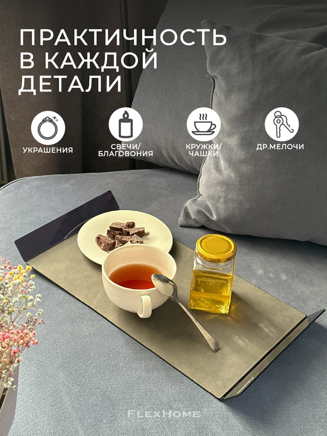 Поднос декоративный прямоугольный FlexHome, 44х22 см, черный интересное: