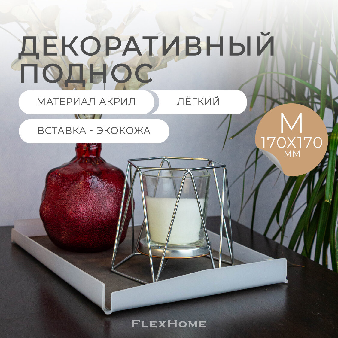 Декоративный поднос из акрила для свечей и украшений FlexHome, 17х17 см, белый интересное: