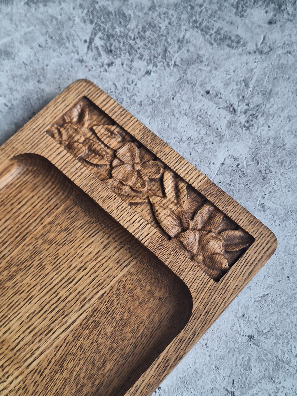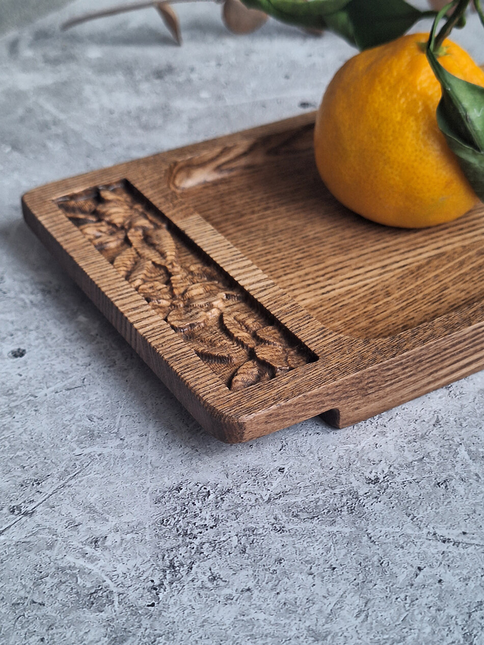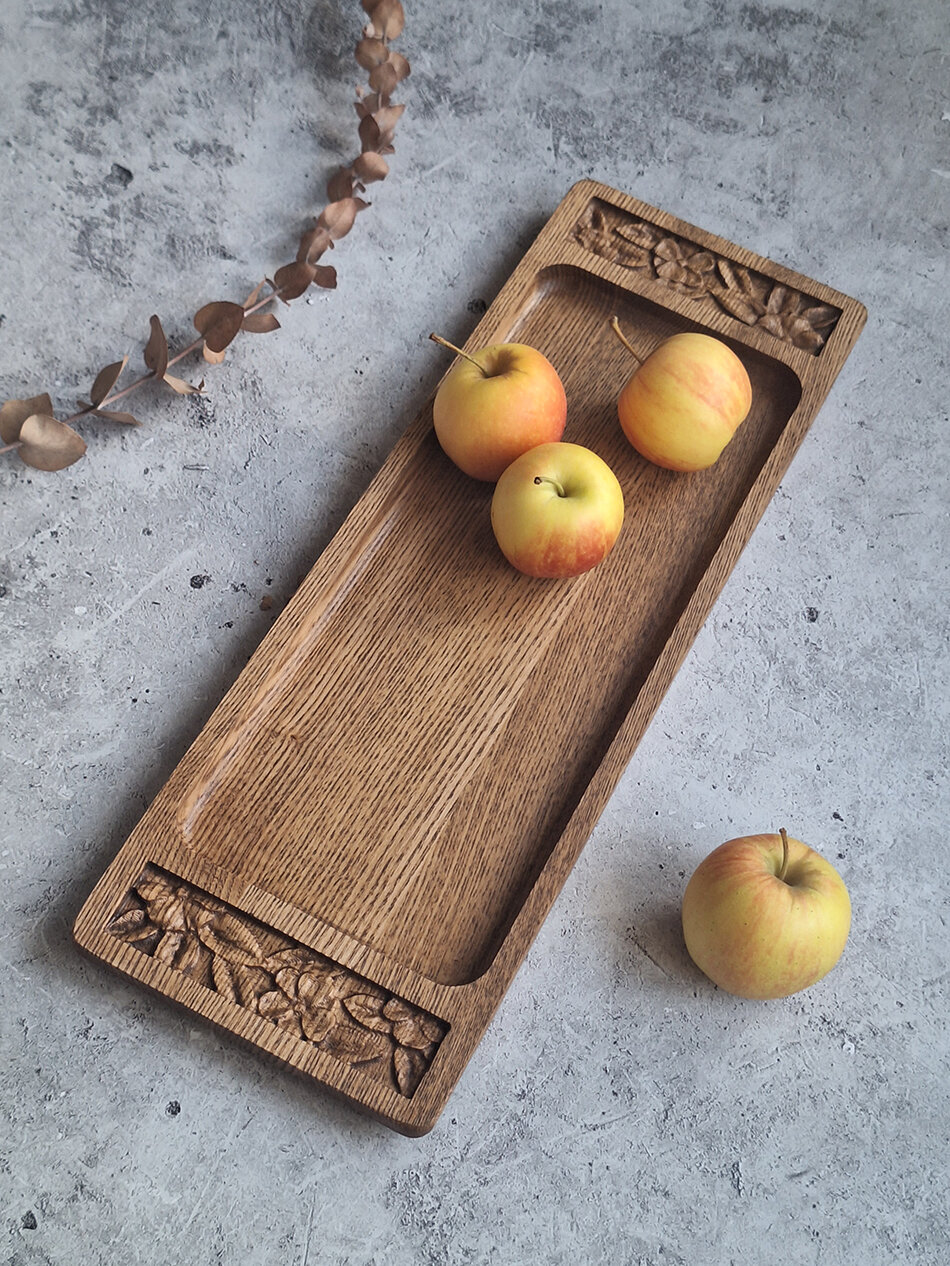 Поднос деревянный c цветочным орнаментом интересное:
