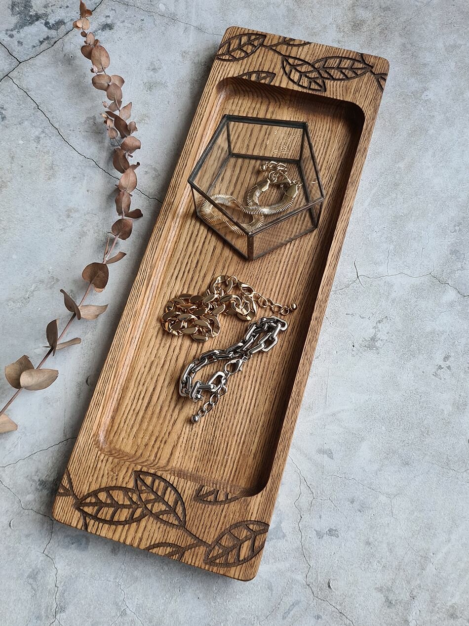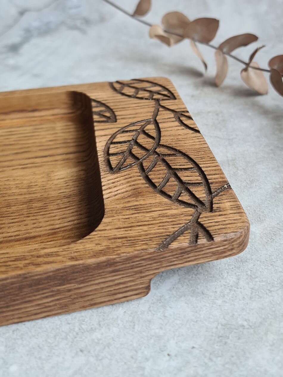 Поднос деревянный с листьями (M) кофейный интересное: